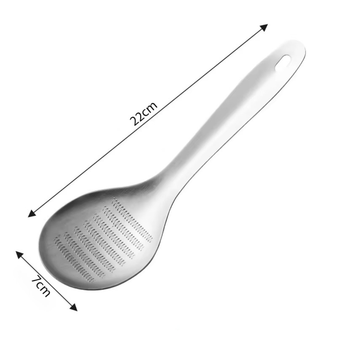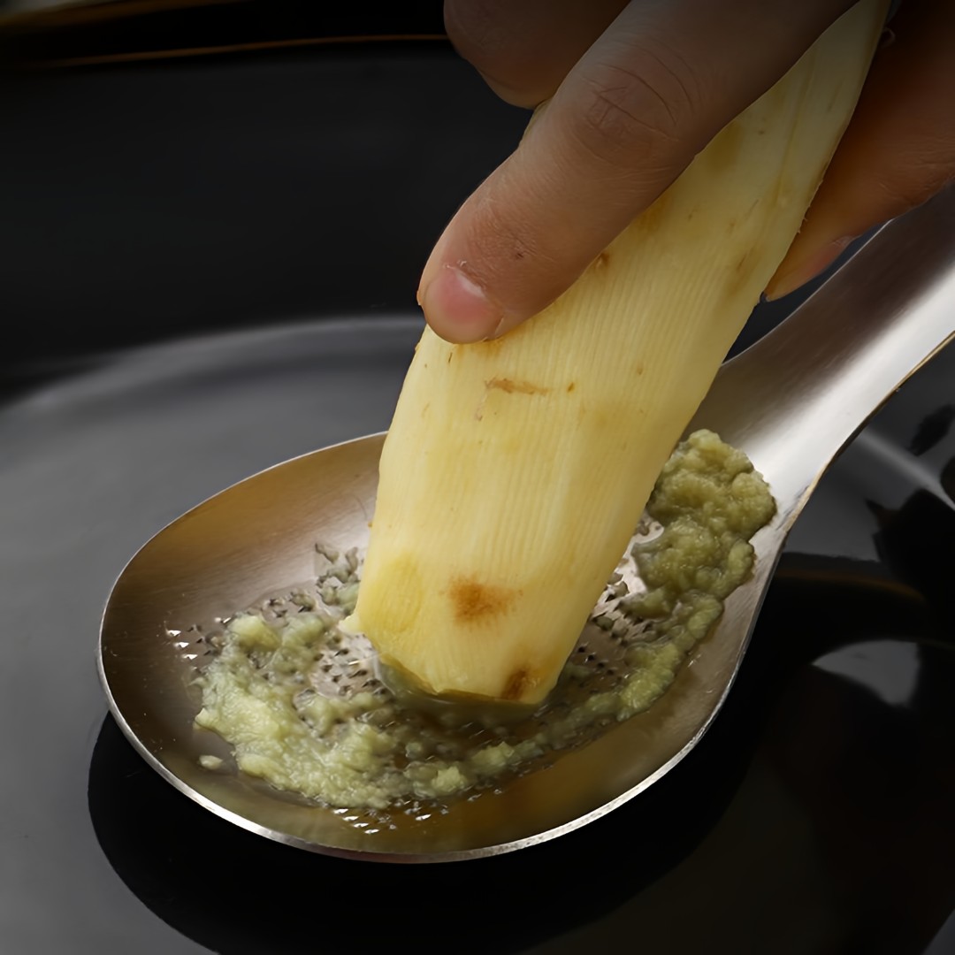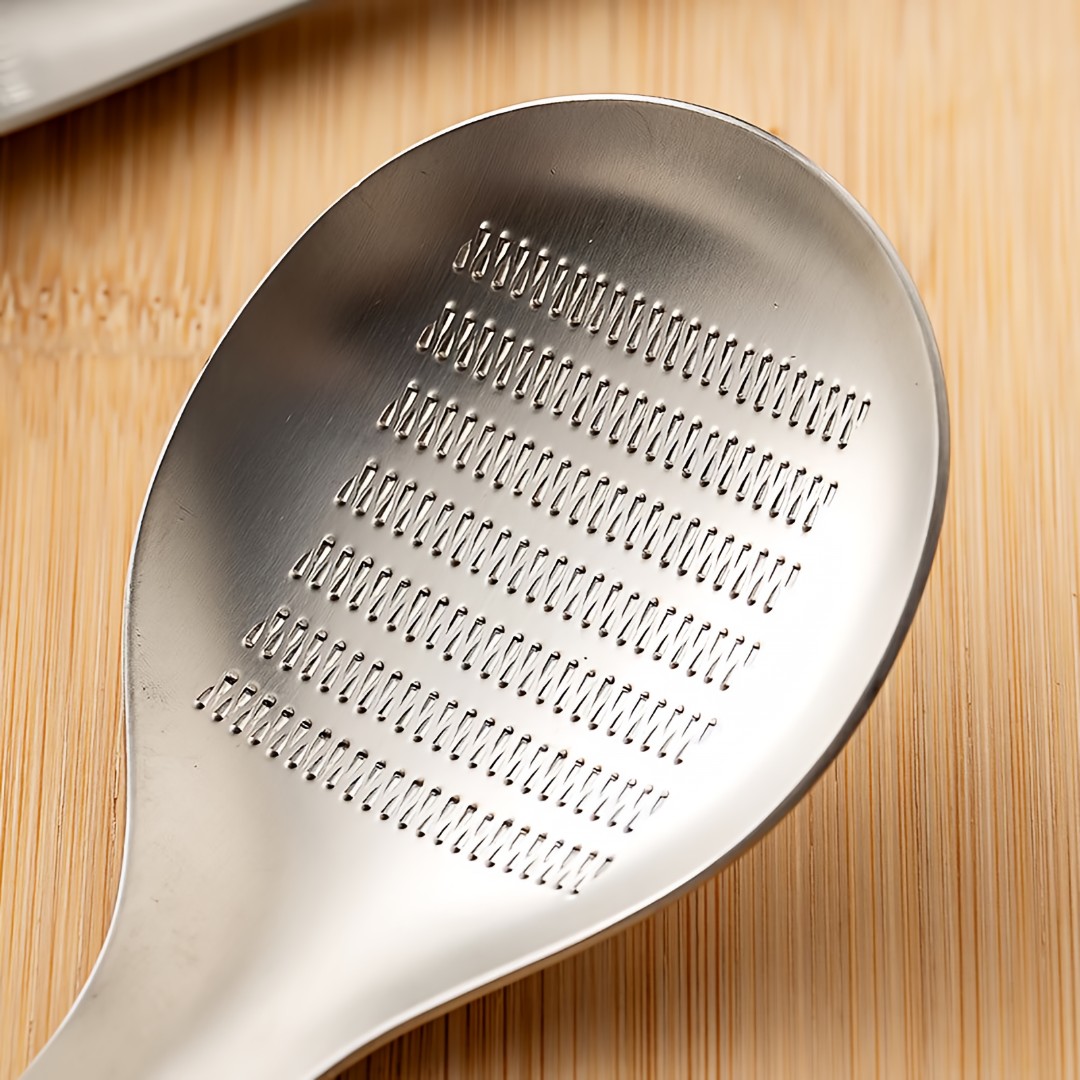 Integrated Grater Spoon Design: Features fine raised grating teeth on the spoon surface, ideal for grating ginger, garlic, and spices directly while collecting paste neatly.