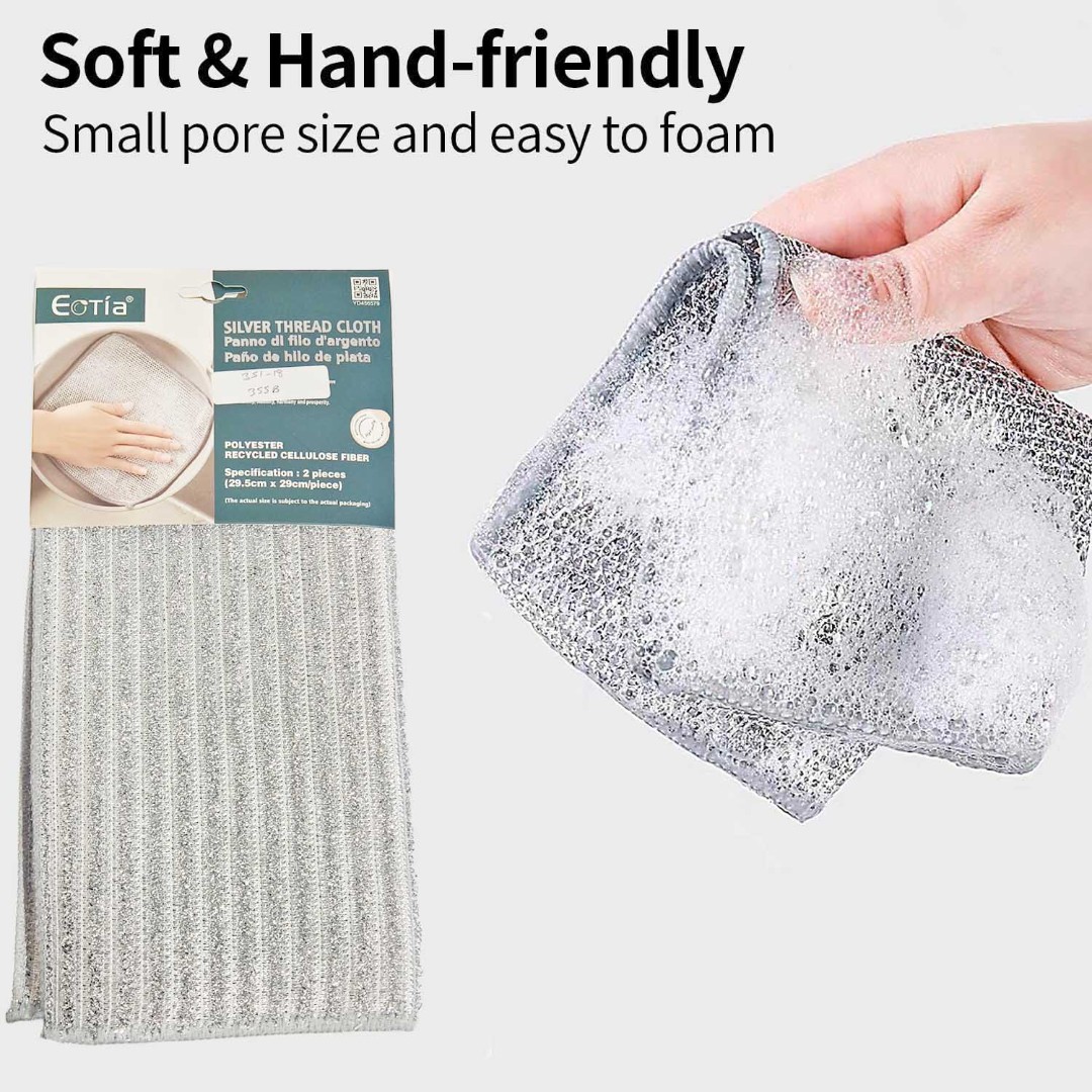 High-Quality Silver Wire Fabric: Made from durable silver-coated polyester wire combined with recycled cellulose fiber for strong cleaning performance without rusting.