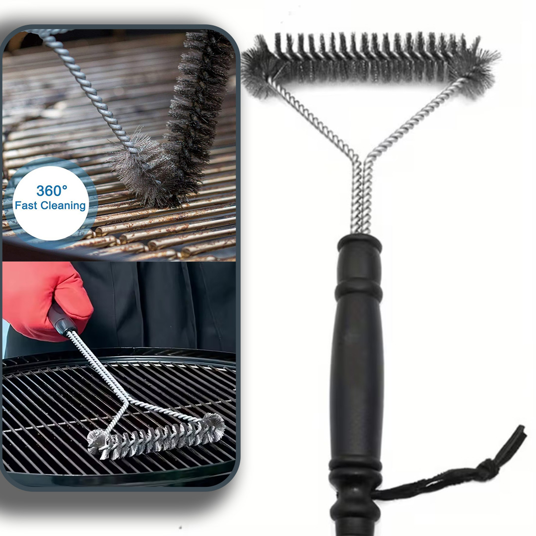 Triangular Grill Cleaning Design: Innovative triangular brush head reaches deep between grill grates and corners, providing 360° efficient cleaning with less effort.