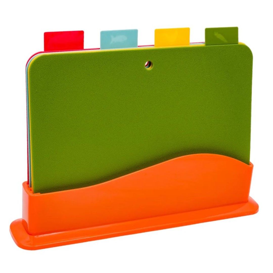 Color-Coded Boards: Multiple colored cutting boards help separate meat, fish, vegetables, fruits, and cooked foods to reduce cross-contamination.