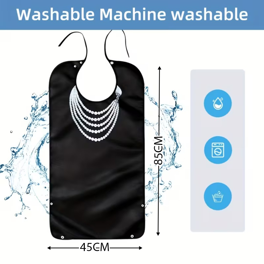 WATERPROOF PROTECTIVE DINING BIB: Designed to shield clothing from food spills, liquids, and stains, keeping users clean and comfortable during meals.