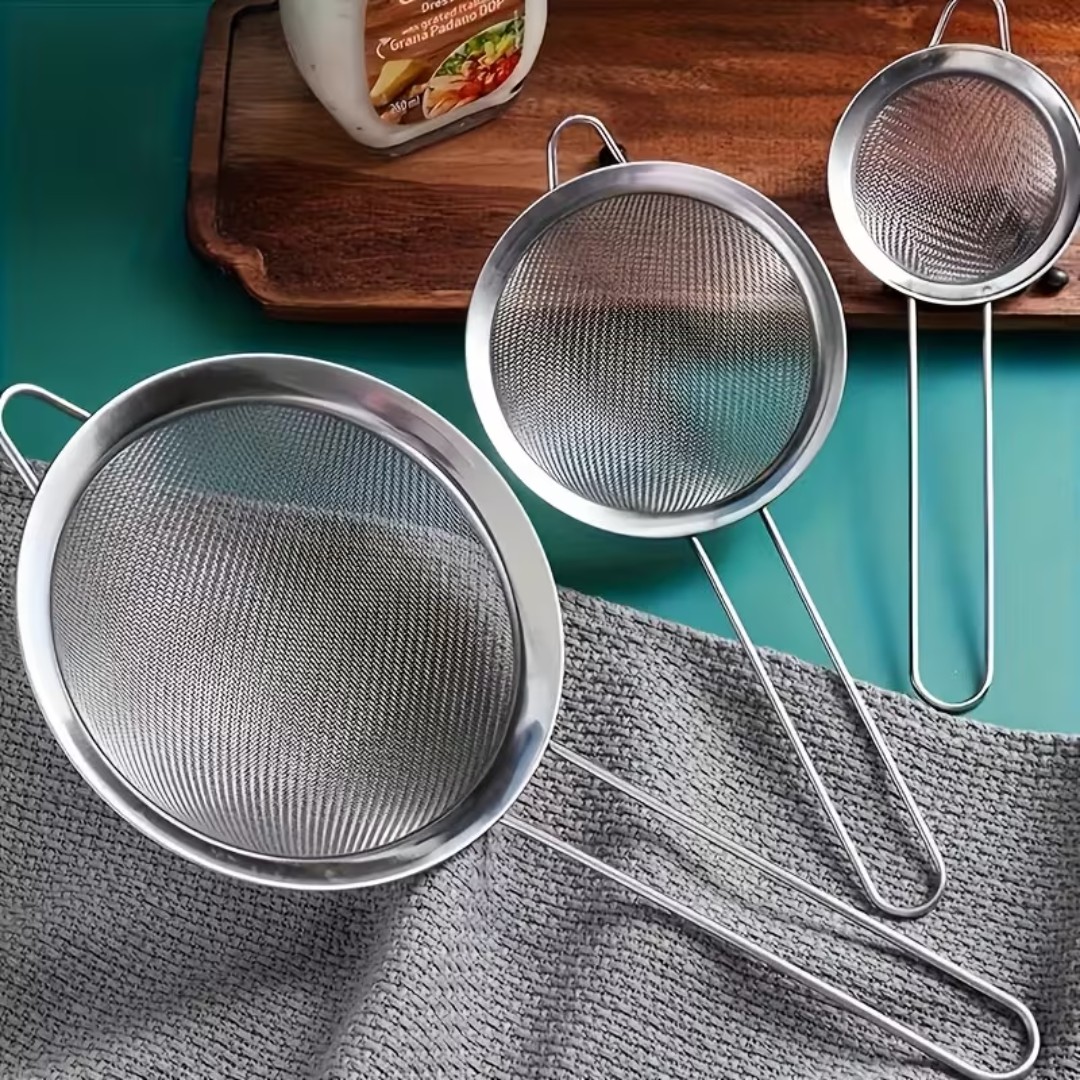 Three Convenient Sizes Set: Includes three practical sizes (8cm, 12cm, and 20cm) to handle different kitchen tasks such as rinsing fruits, draining pasta, sifting flour, or straining sauces.
