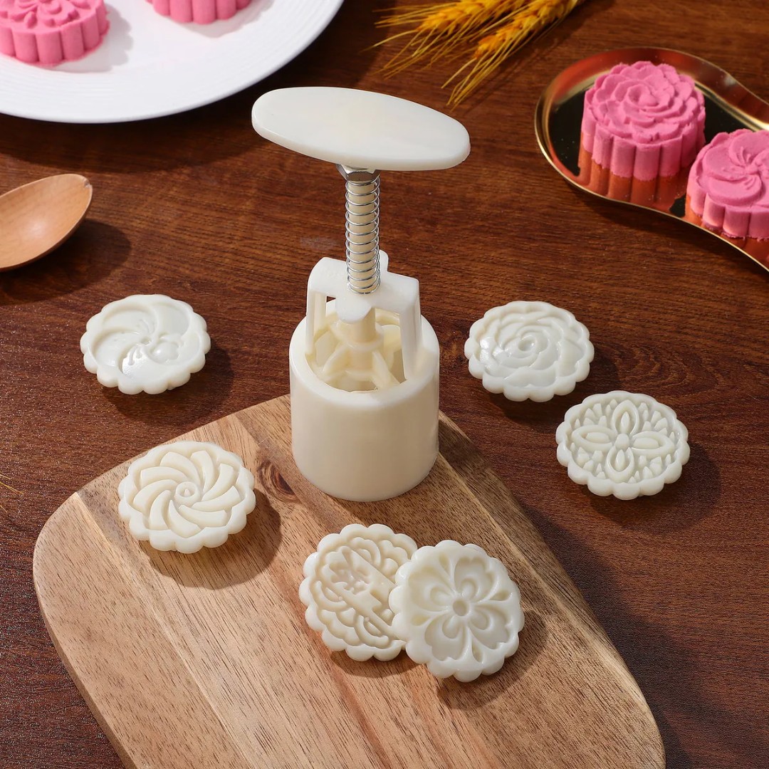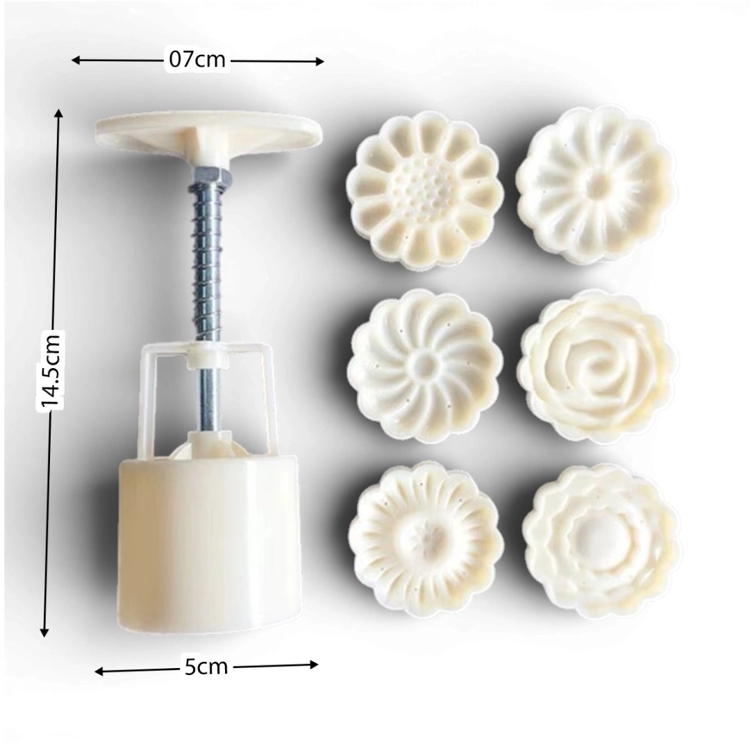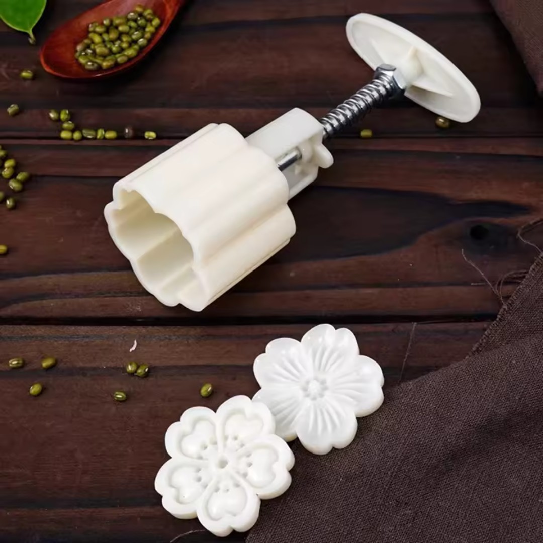 Multiple Decorative Flower Patterns: Includes several interchangeable stamp molds that create elegant floral designs, perfect for making mooncakes, cookies, pastries, and traditional desserts with professional-looking details.