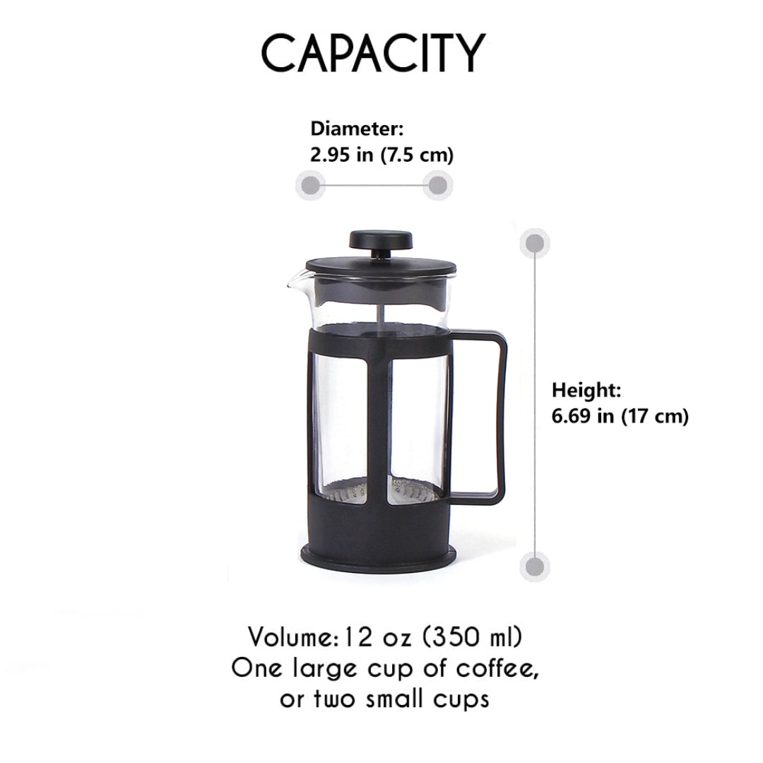 Compact & Practical Capacity: 350 ml (12 oz) capacity makes one large cup or two small cups of coffee, ideal for personal use at home, in the office, or during travel.