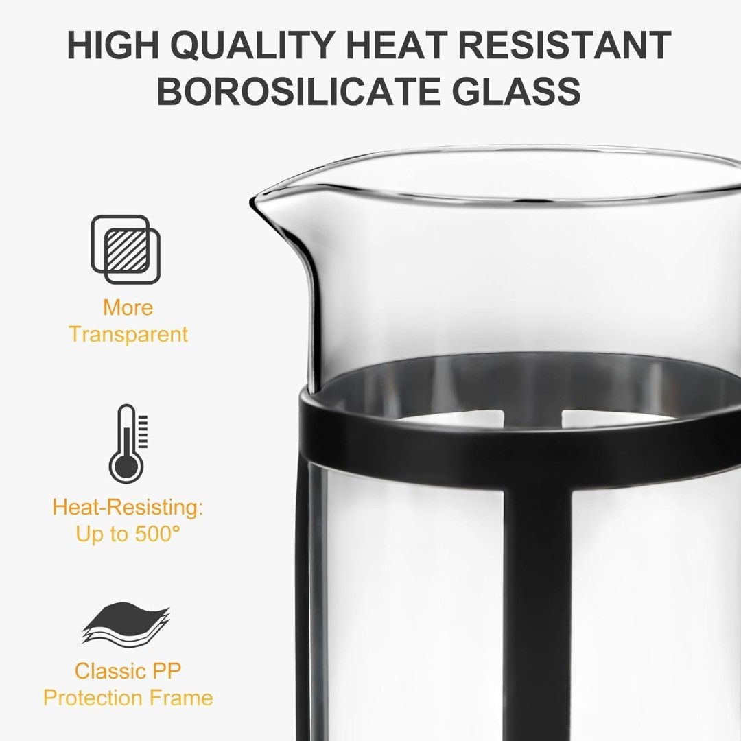 Rich Flavor French Press Brewing: Designed to extract full flavor and aroma from coffee grounds using the classic press brewing method, delivering smooth and rich coffee every time.