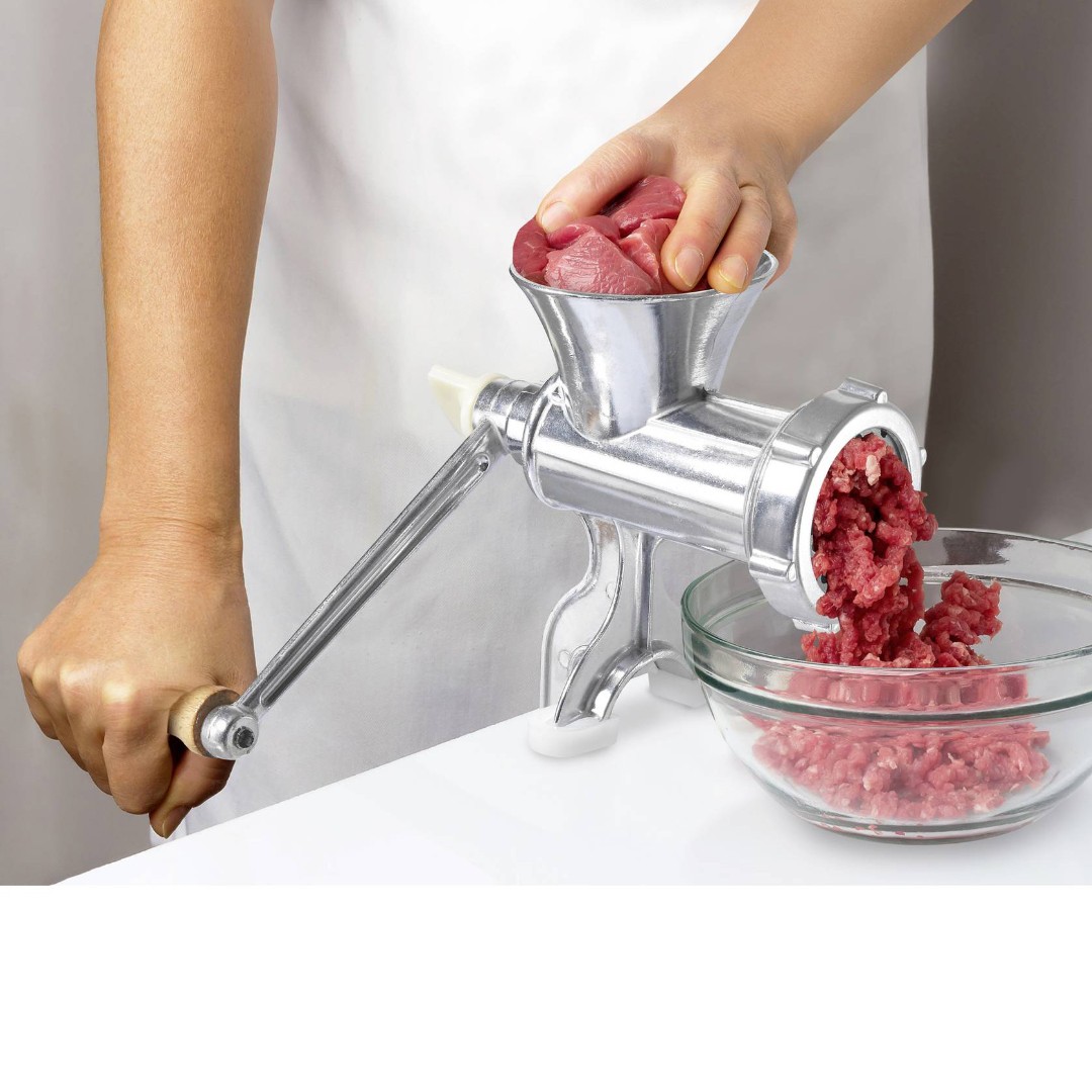 Heavy-Duty Manual Meat Grinder: Designed for efficient manual grinding of fresh meat, allowing you to prepare homemade minced meat, burgers, sausages, and other recipes with full control over texture.