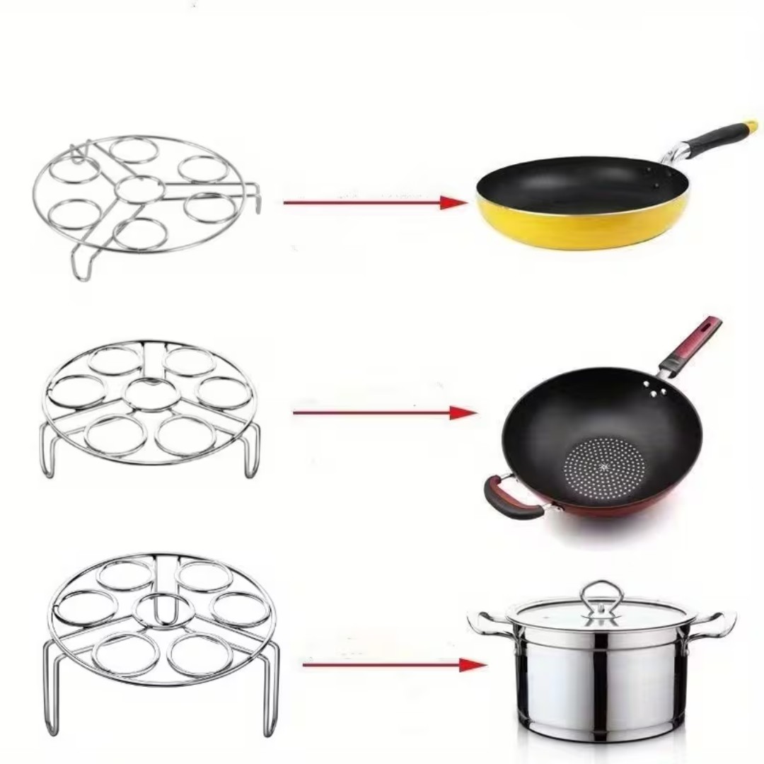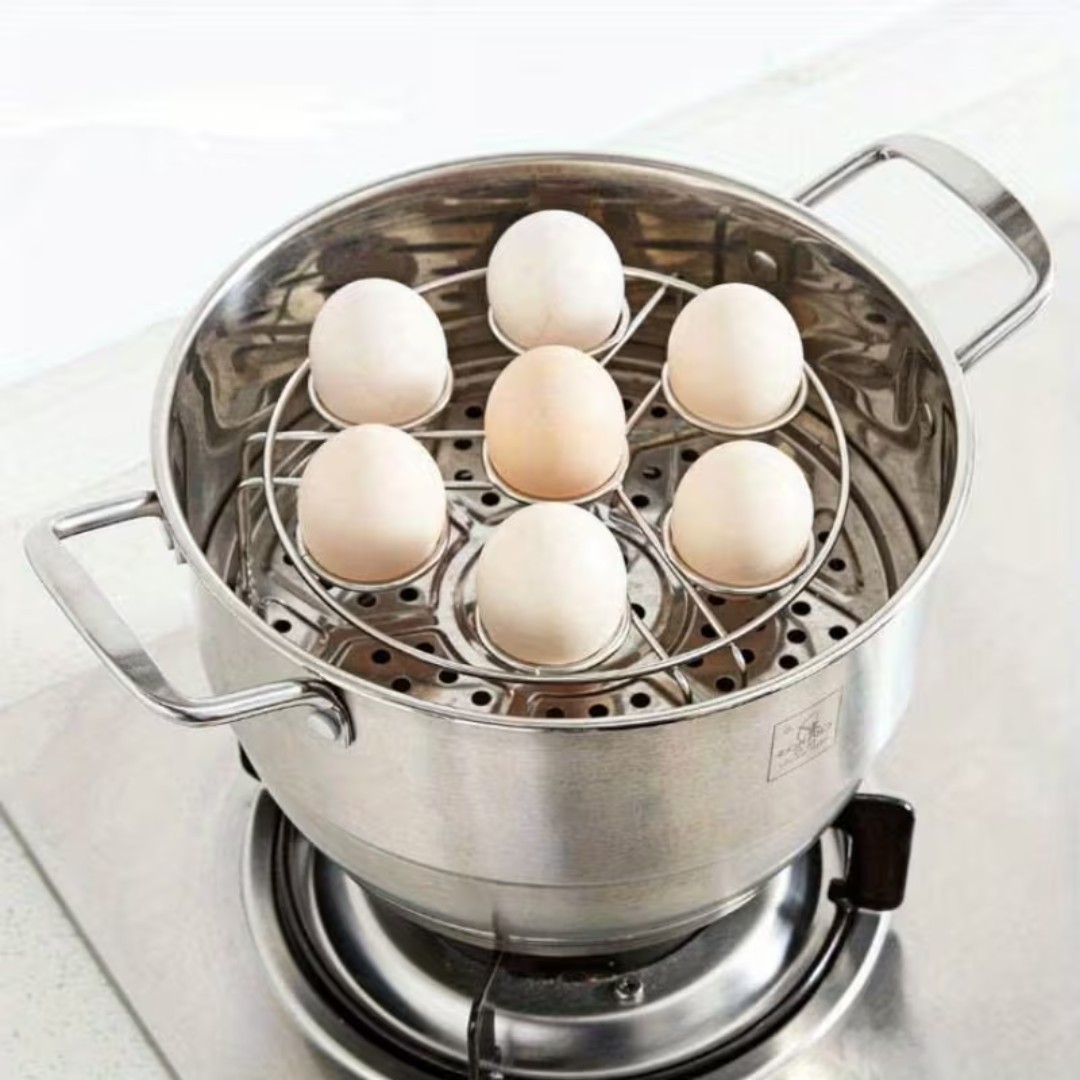 Multi-Functional Egg Steaming Rack: Designed to hold up to 7 eggs securely while steaming or boiling, making it easier to cook multiple eggs evenly in pots, pans, or pressure cookers.