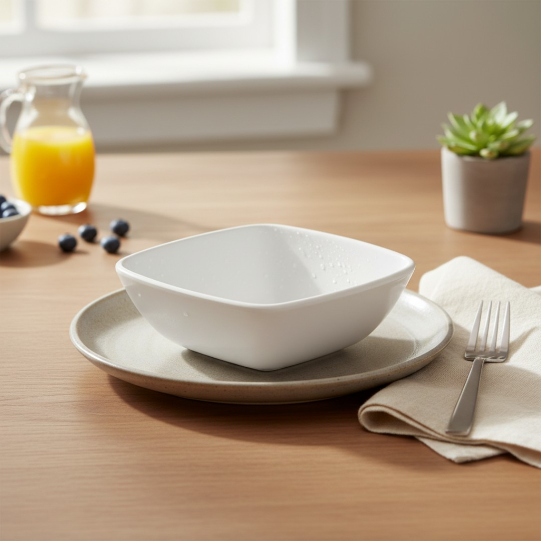 Modern Square Bowl Design: Features a stylish square shape with smooth curved edges that adds a contemporary touch to dining tables, kitchens, and food presentations.