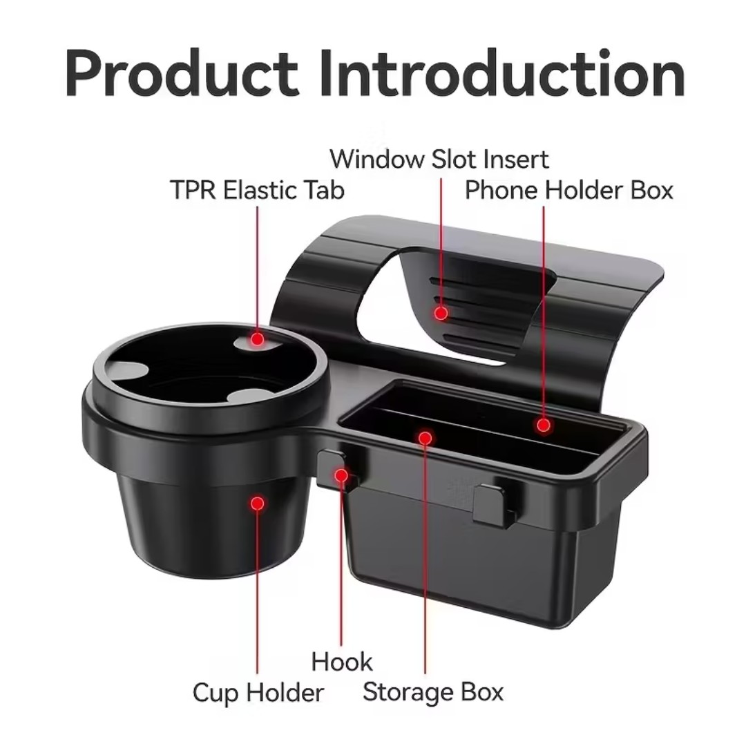 4-in-1 Multifunctional Car Organizer: Smart design combines a cup holder, phone holder, storage box, and hanging hooks, keeping your car essentials organized and within easy reach.