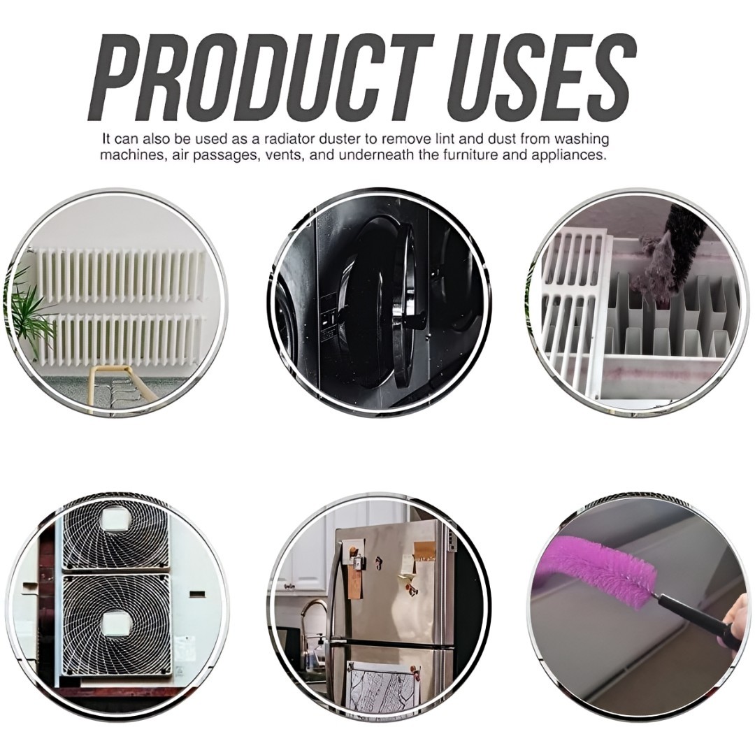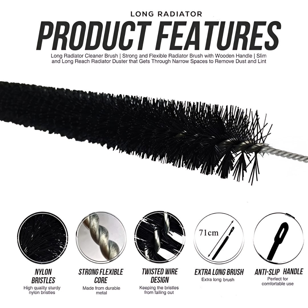 Extra-Long Deep Cleaning Brush: Designed with an extended 71 cm length that easily reaches deep and narrow spaces such as radiators, bottles, pipes, vents, and hard-to-clean gaps.