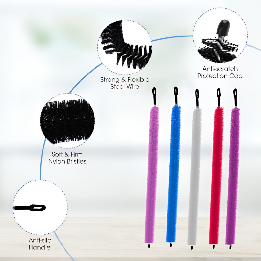 Flexible & Bendable Core: Built with a strong twisted metal wire core that allows the brush to bend and adapt to different shapes while maintaining durability during cleaning.