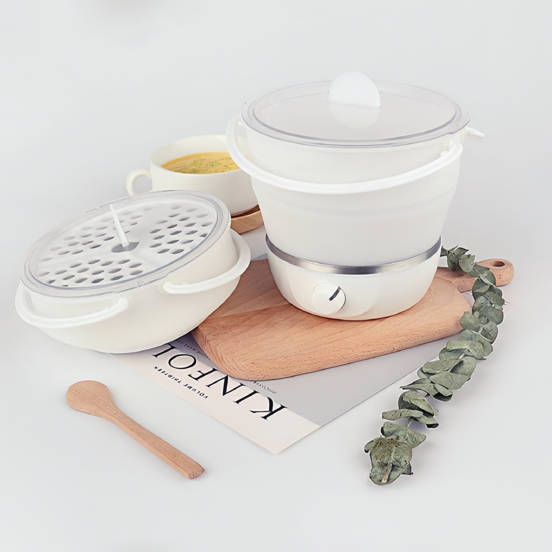 Collapsible Space-Saving Design: The smart foldable structure allows the pot to collapse into a compact size, making it easy to store in small kitchens, dorm rooms, luggage, or travel bags.