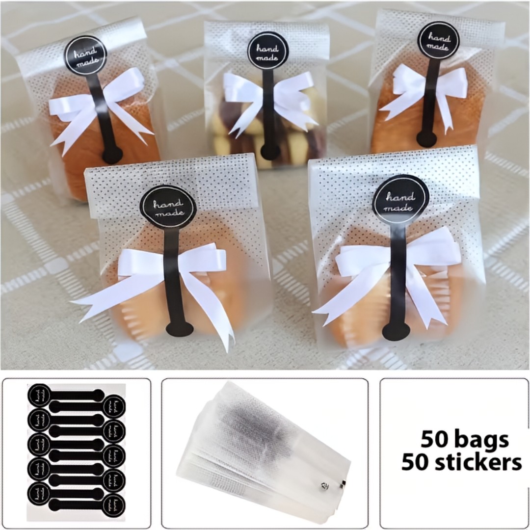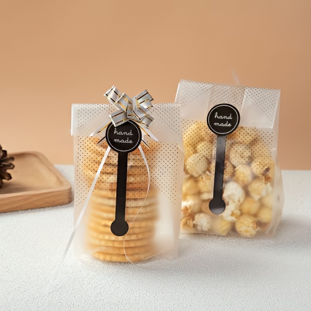 Elegant Gift Packaging Bags: Stylish translucent gift bags designed to present candies, cookies, chocolates, handmade crafts, and small gifts in an attractive and professional way.
