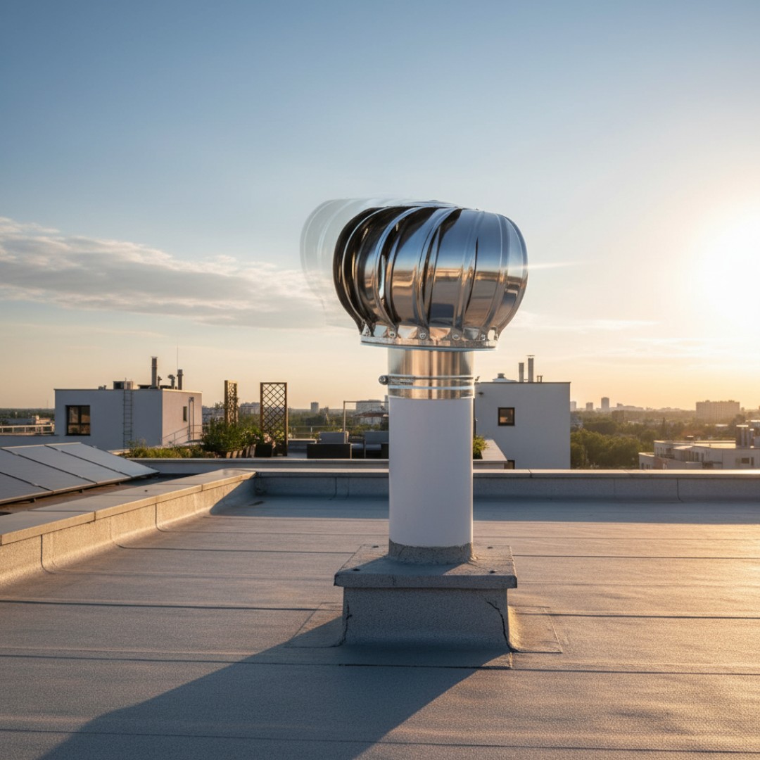 Efficient Wind-Powered Roof Ventilator: Designed to improve air circulation by using natural wind energy to extract hot air, smoke, and humidity from buildings without requiring electricity.