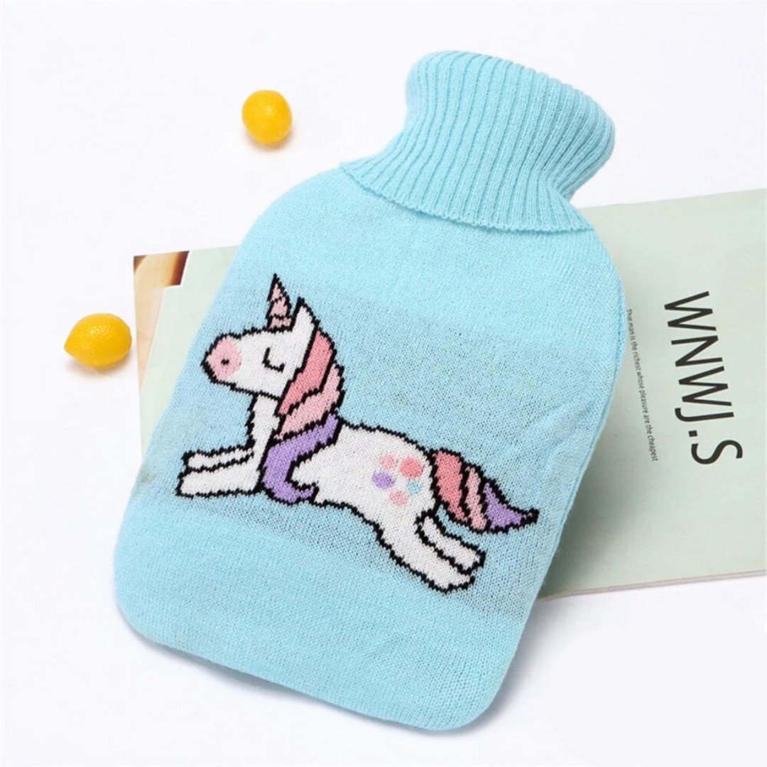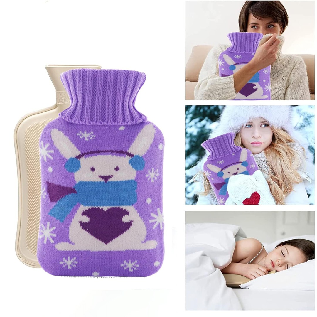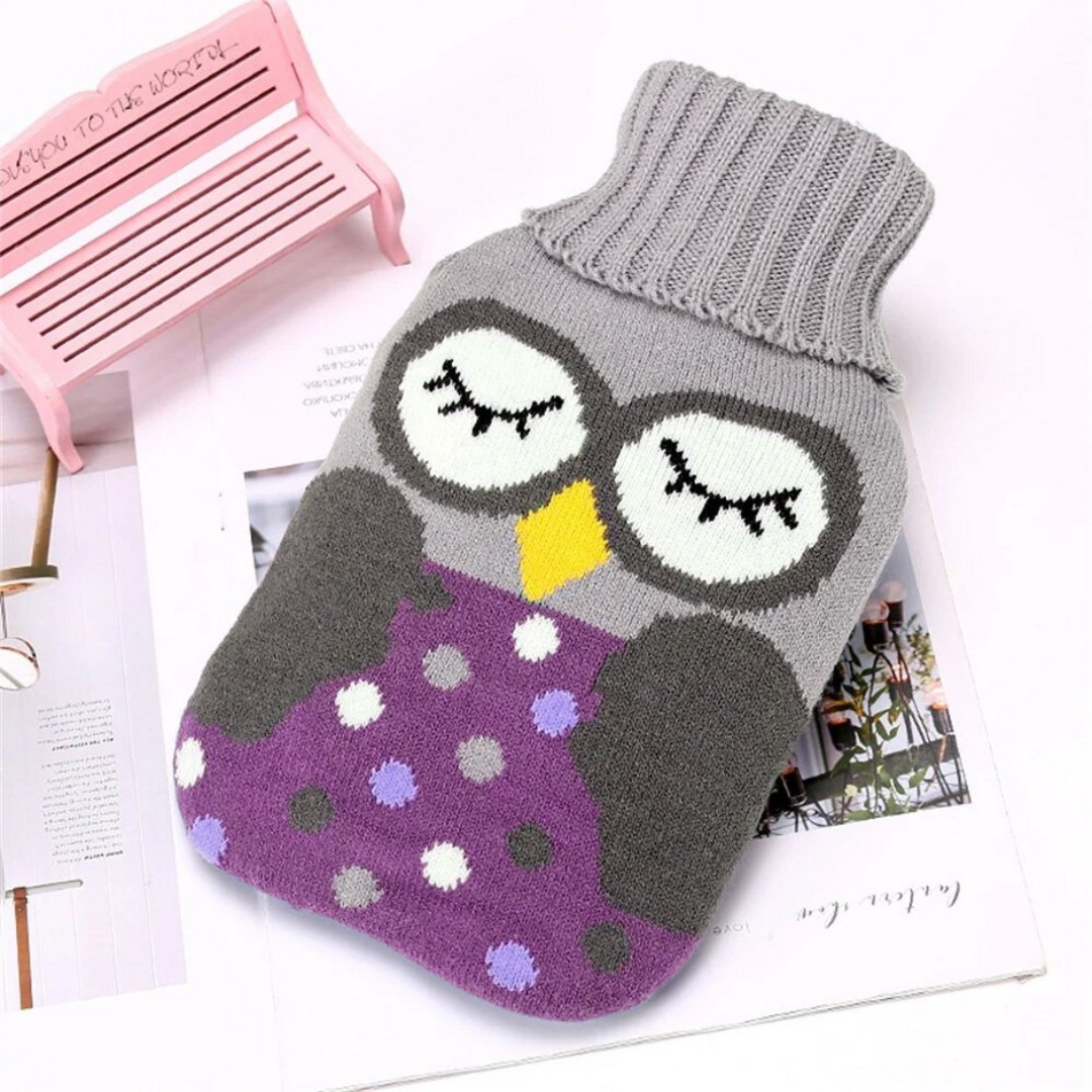 Cute Knitted Protective Cover: Comes with a soft knitted fabric cover featuring adorable cartoon designs that adds insulation, prevents direct heat contact, and improves comfort.