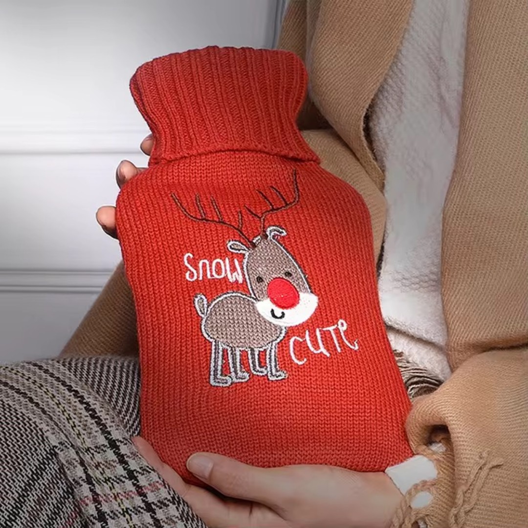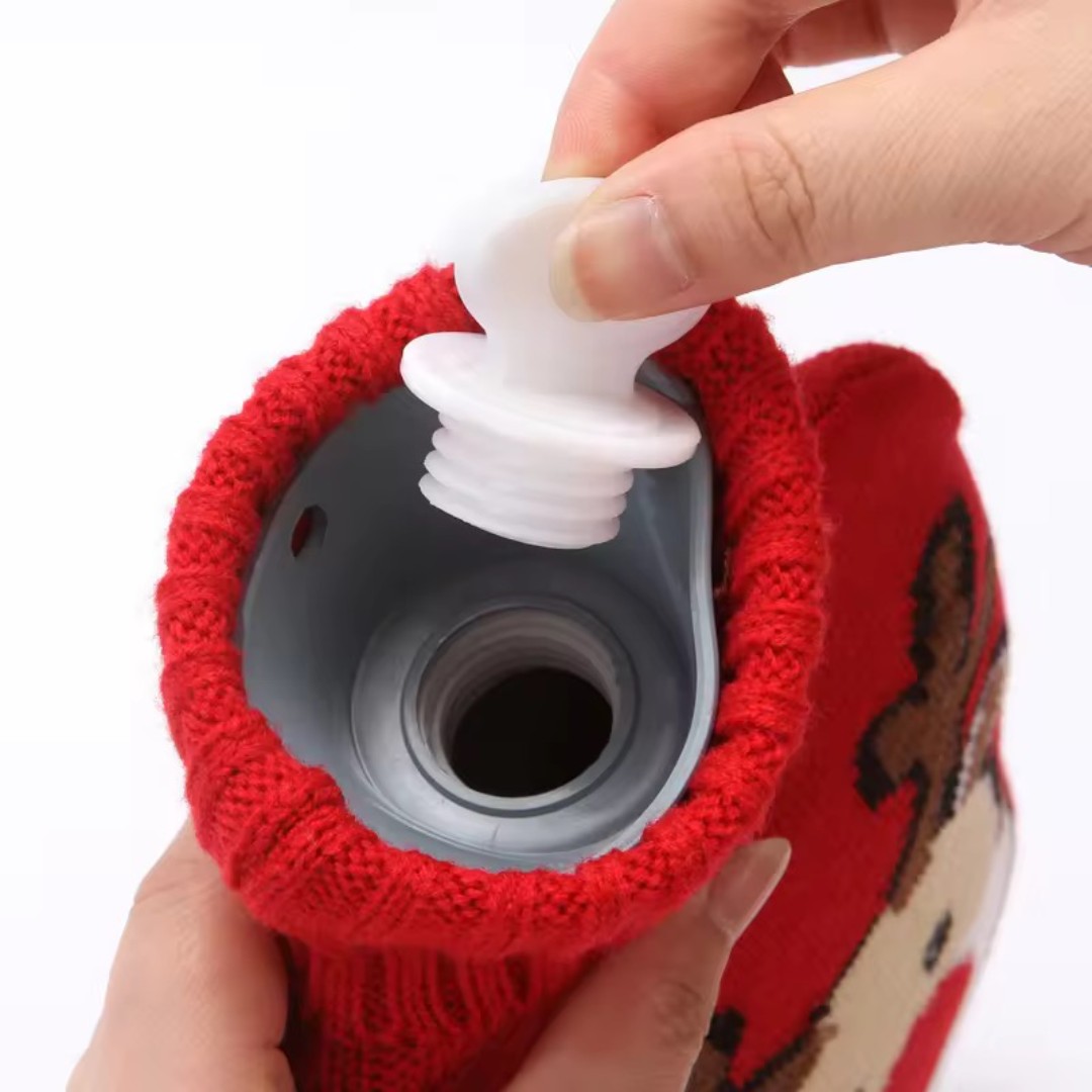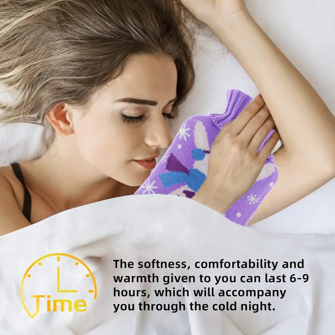Cute Knitted Protective Cover: Comes with a soft knitted fabric cover featuring adorable cartoon designs that adds insulation, prevents direct heat contact, and improves comfort.