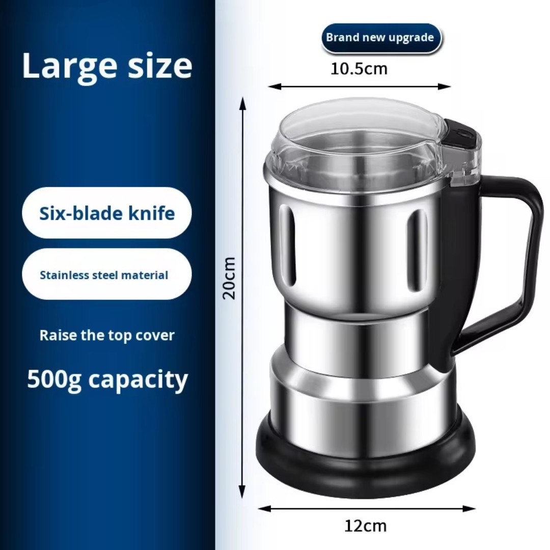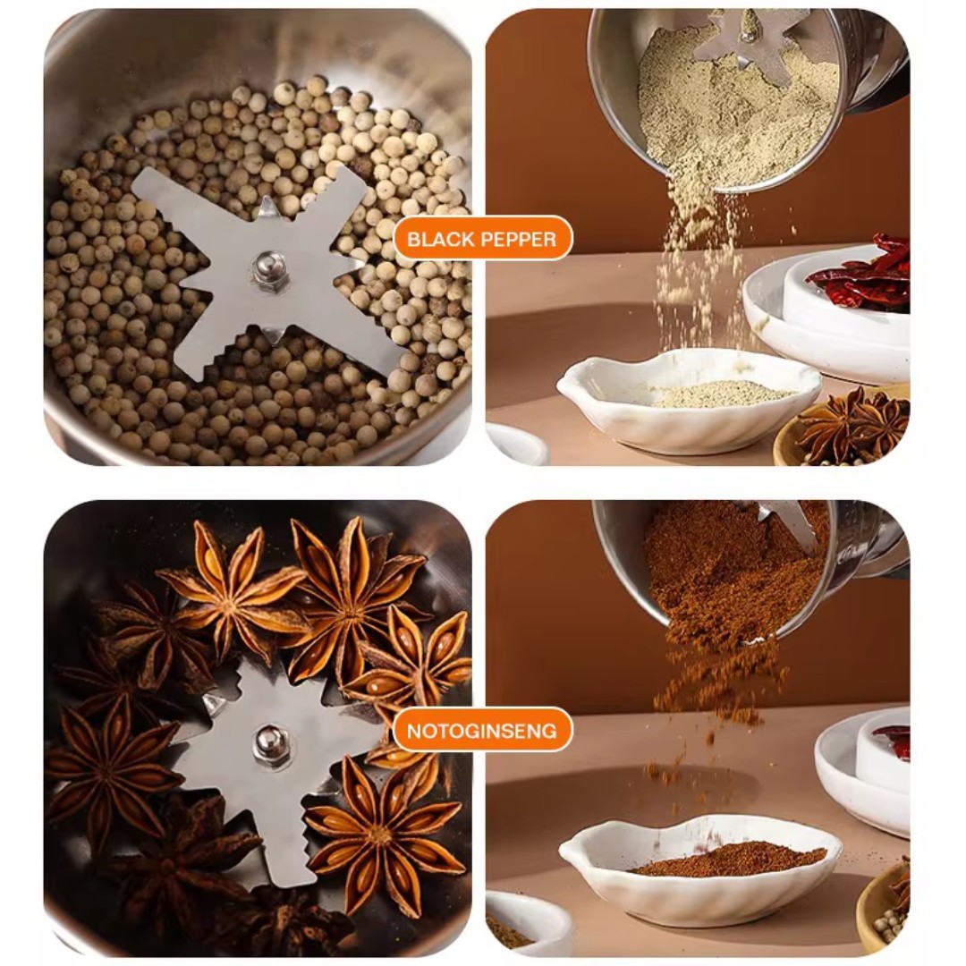 Large 500g Grinding Capacity: Spacious grinding chamber allows you to process larger quantities at once, making it ideal for home kitchens, spice preparation, and food ingredient grinding.