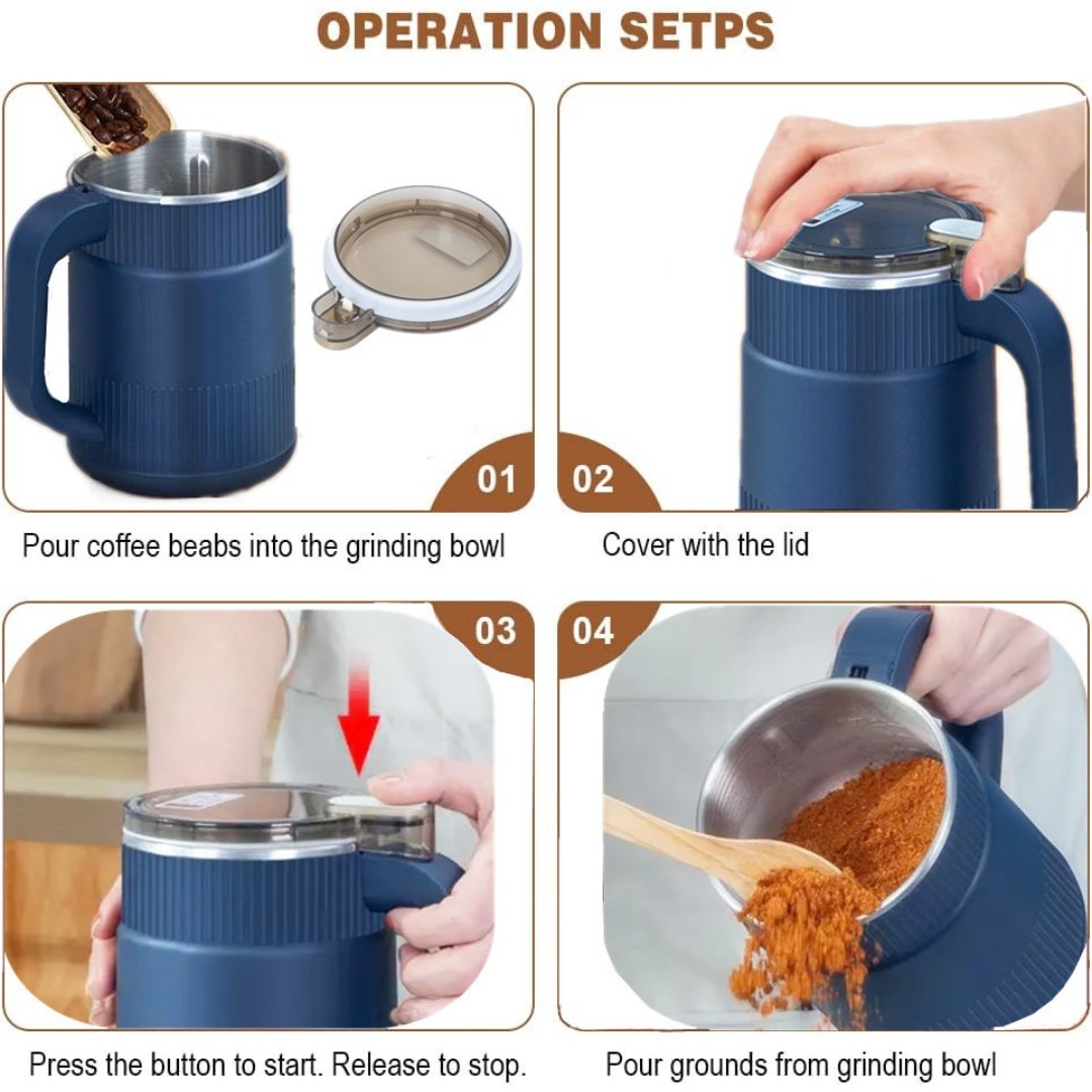 One-Touch Easy Operation: Simple press-button control allows effortless grinding—press to start and release to stop, giving full control over grinding texture and fineness.
