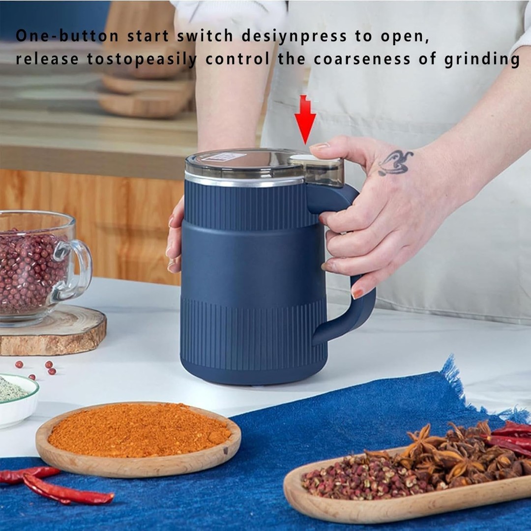 Powerful Electric Grinding Performance: Designed with a high-speed motor that efficiently grinds coffee beans, spices, herbs, and grains into fine powder within seconds for fresh and flavorful results.