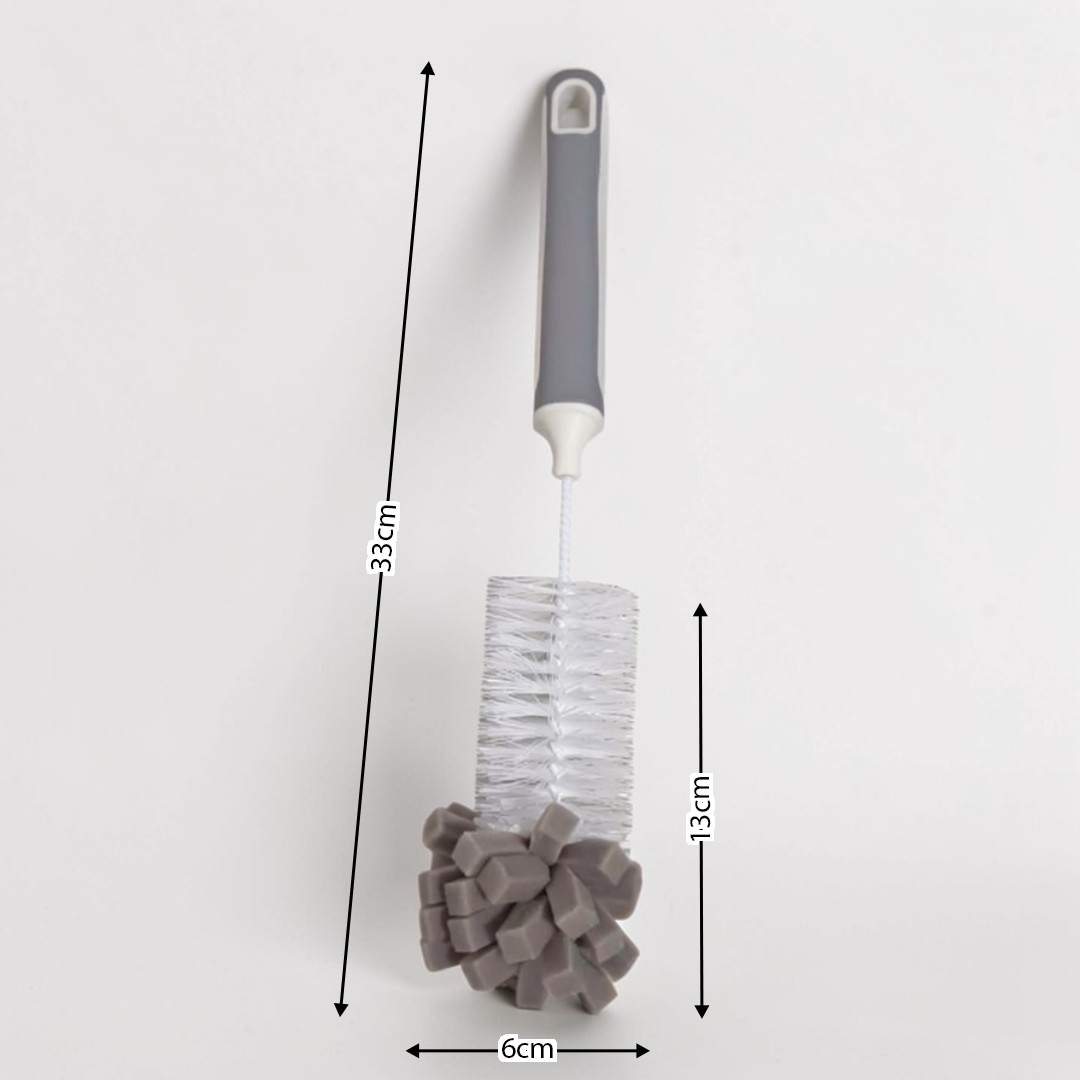 Effective 360° Cleaning: Long cylindrical brush reaches every corner inside bottles, while the sponge head tackles stubborn residue at the base.