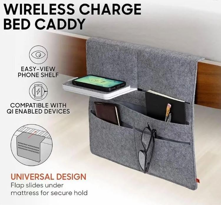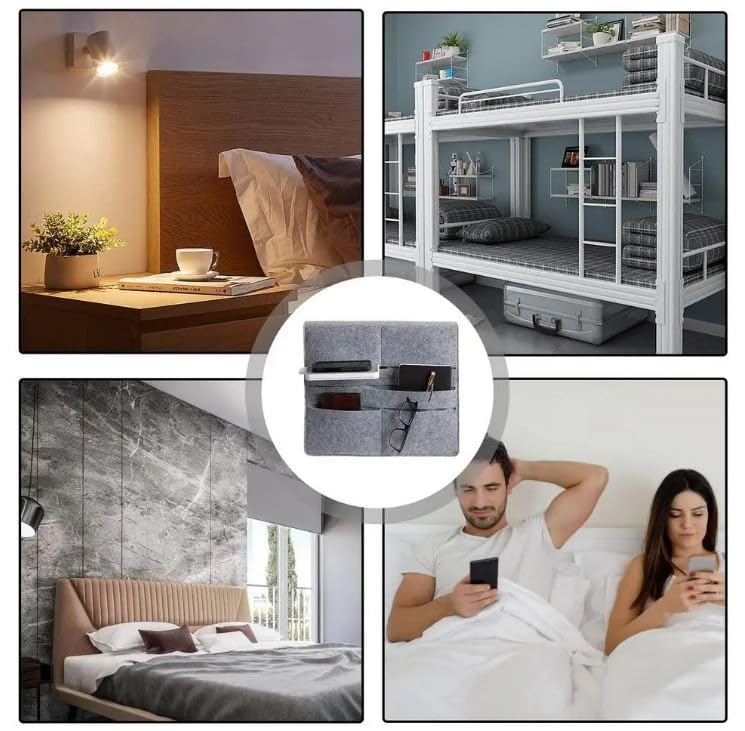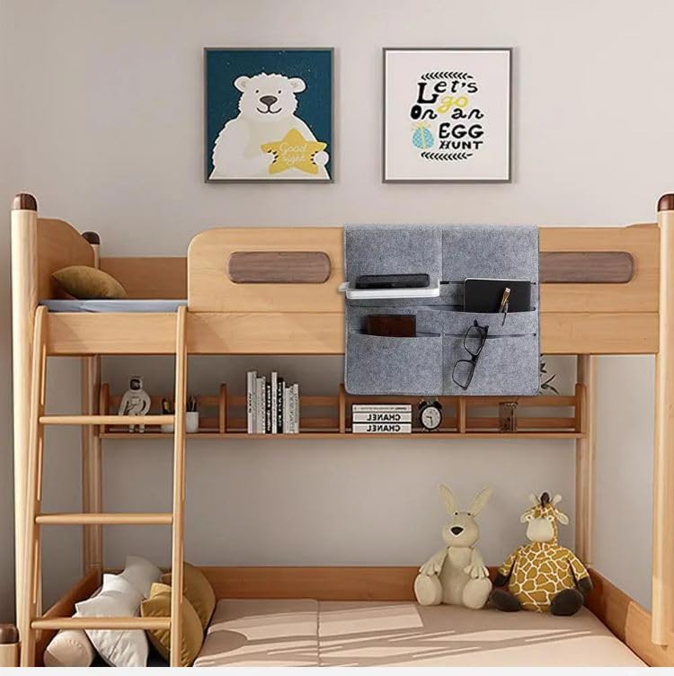 Smart Bedside Organizer Design: Conveniently hangs over bed rails or bunk beds, providing instant access to your daily essentials without taking extra space.