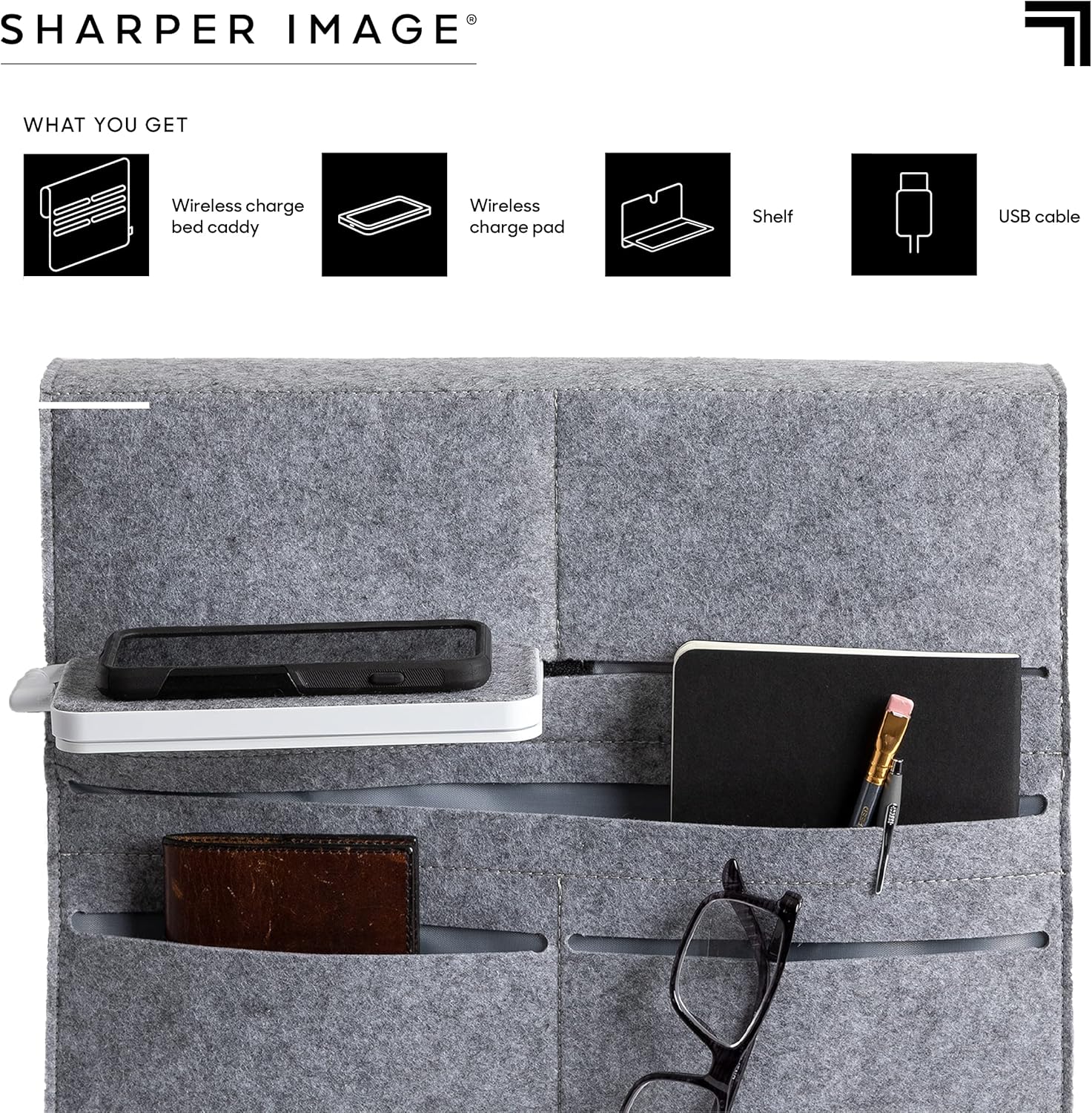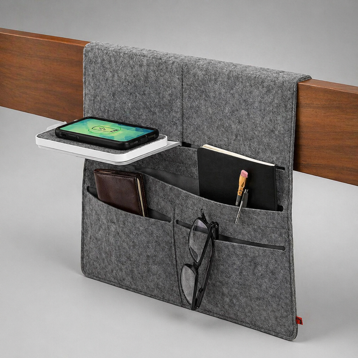 Multi-Pocket Storage System: Designed with multiple compartments to organize books, tablets, glasses, remotes, and personal items neatly in one place.