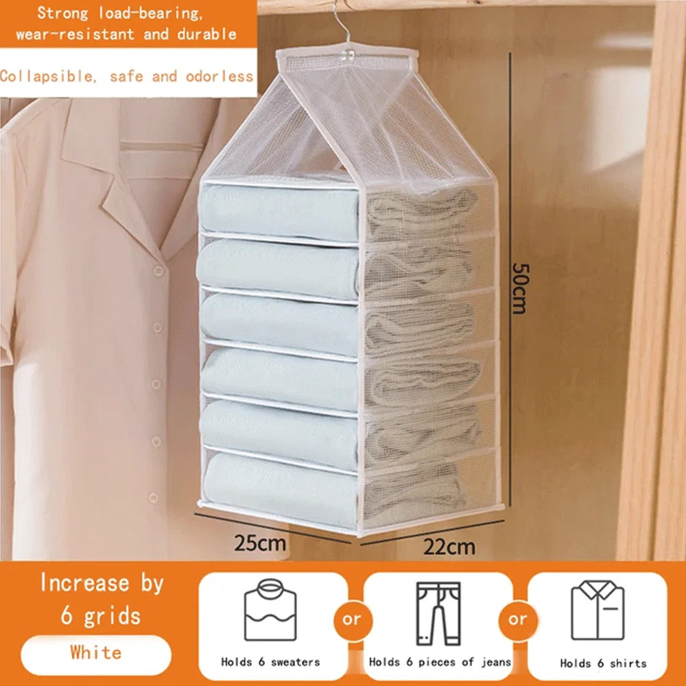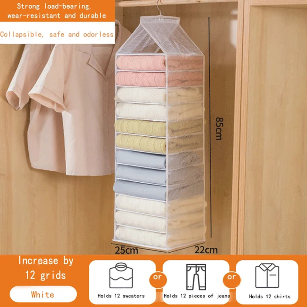 Vertical Hanging Organizer: Smart wardrobe solution designed to hang easily on closet rods, maximizing vertical space while keeping your clothes neatly arranged.