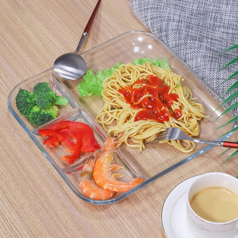 Made of glass material, safe, ensures food. This fun design and dinner plate will bring mealtime fun. It is more convenient and practical for dividing the food. Perfect for rice, pastas, salads, cereals and other food, it's a great food plate for your home.