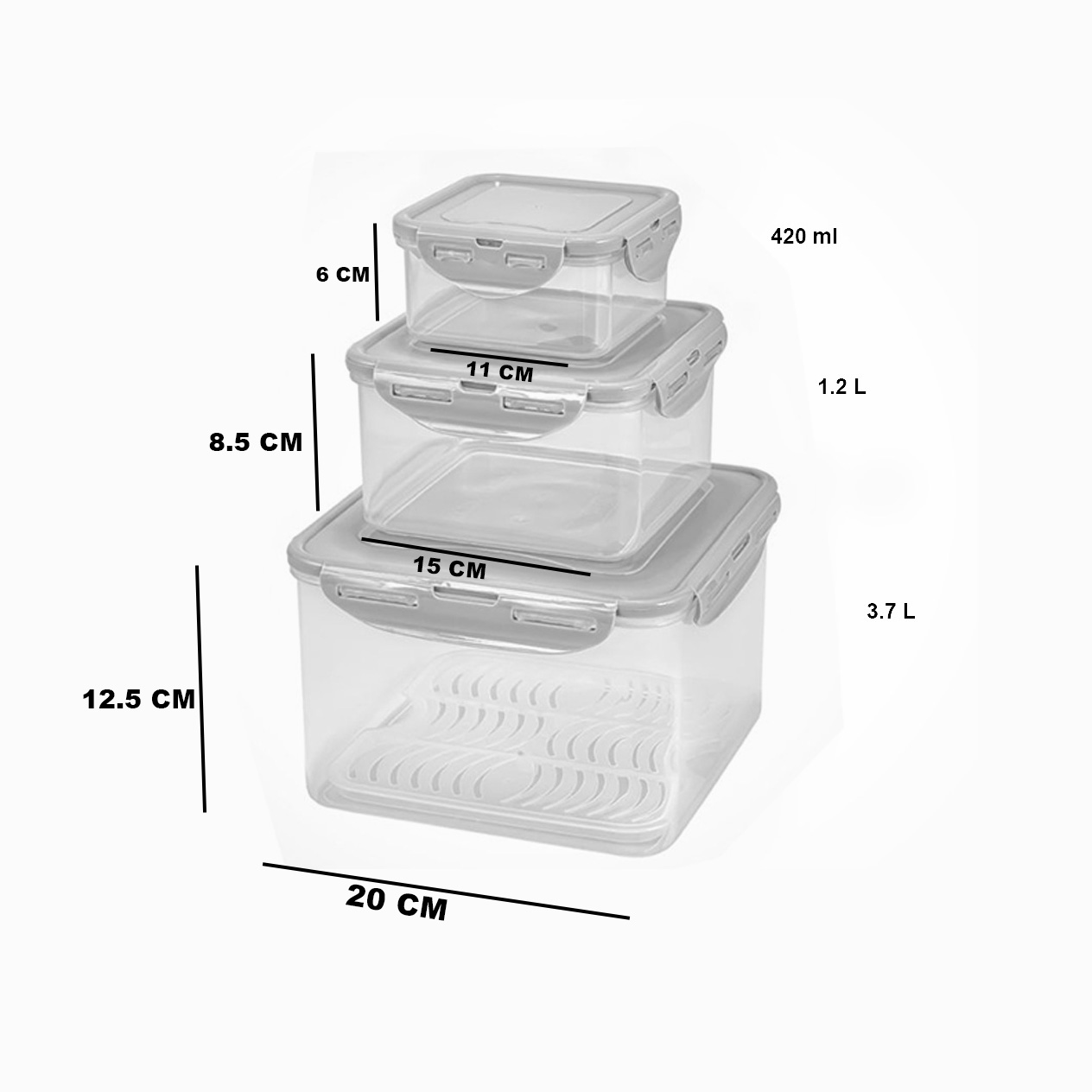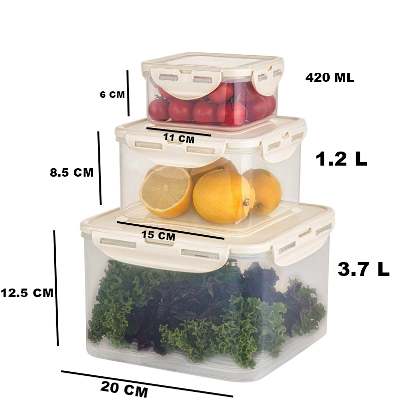 مجموعة من 3 علب طعام مربعة الشكل بسعة 420 مل ، 1.2 لتر ، 3.7 لتر