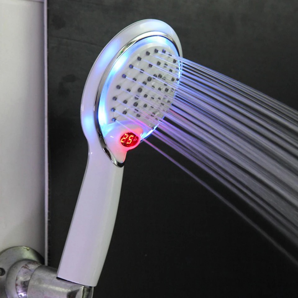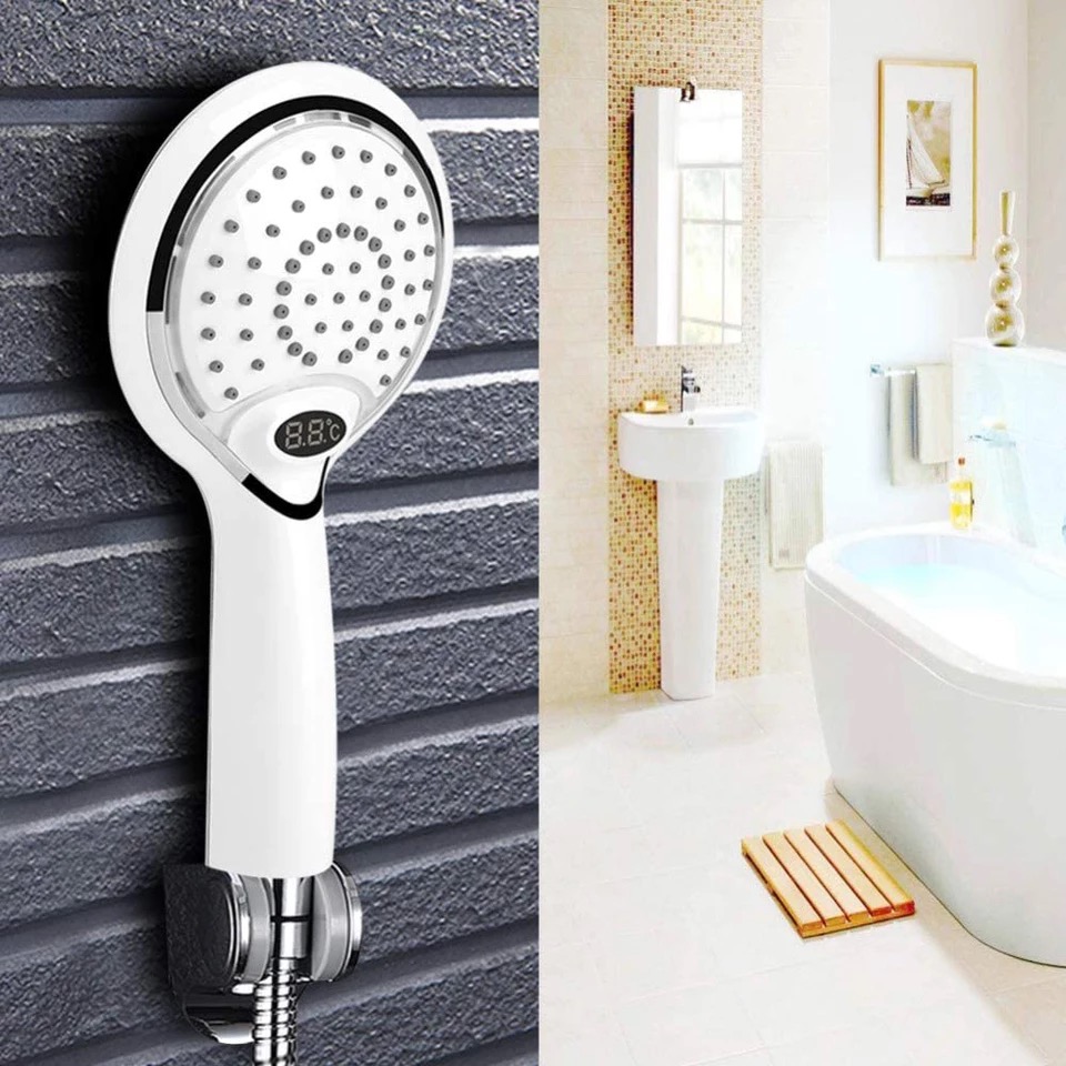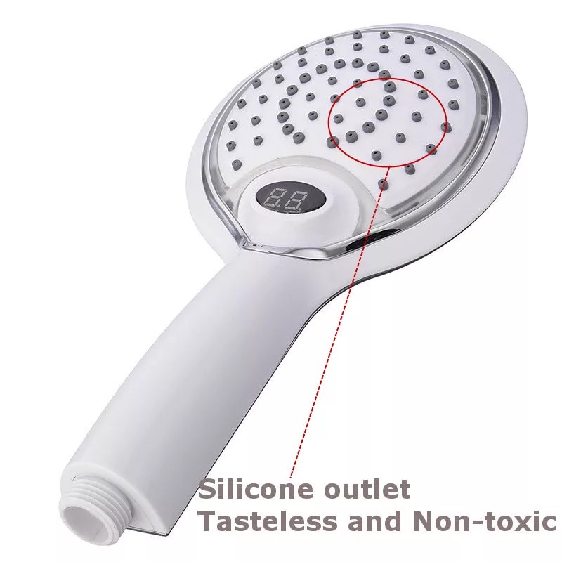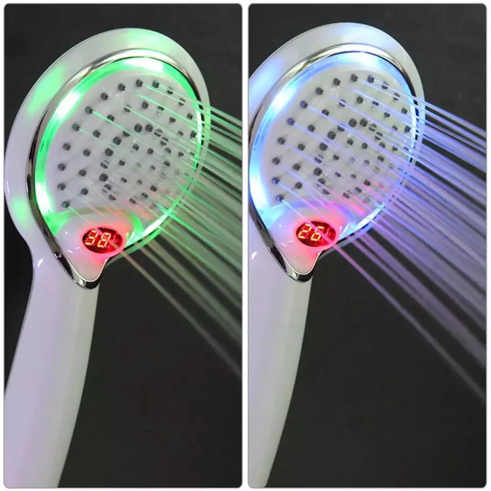 رأس دش مستشعر درجة حرارة الماء يتميز رأس الدش بتغيير لون أضواء LED تلقائيًا وفقًا لدرجة حرارة الماء. (0~29: أزرق؛ 30~41: أخضر؛ >41: أحمر)