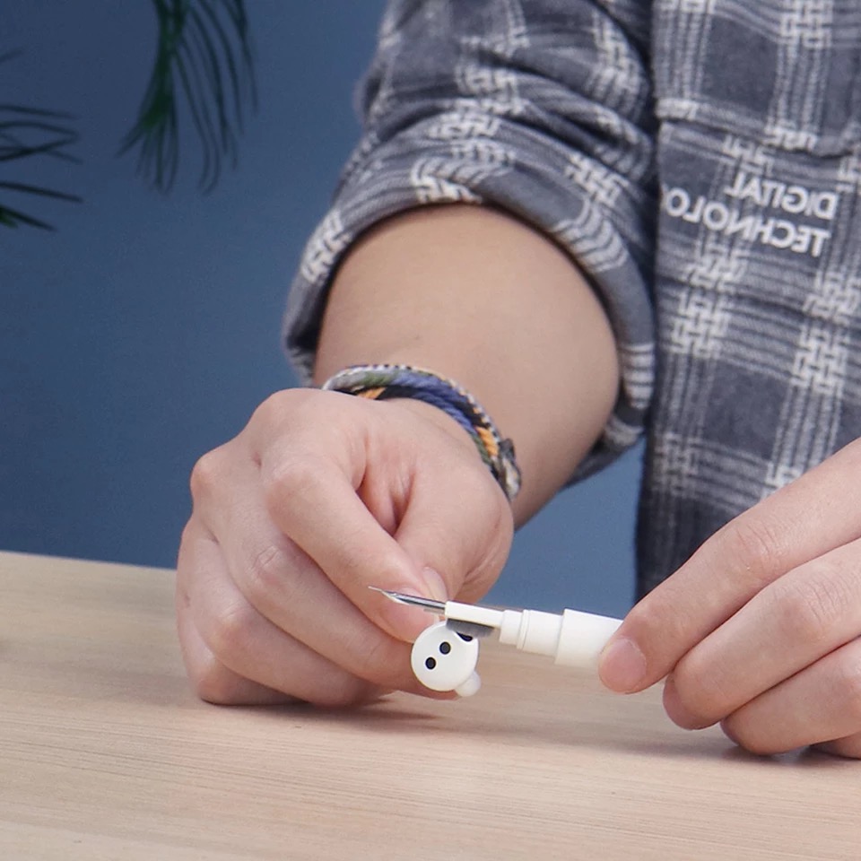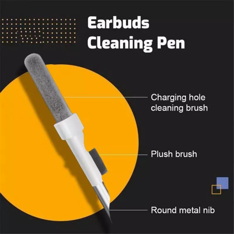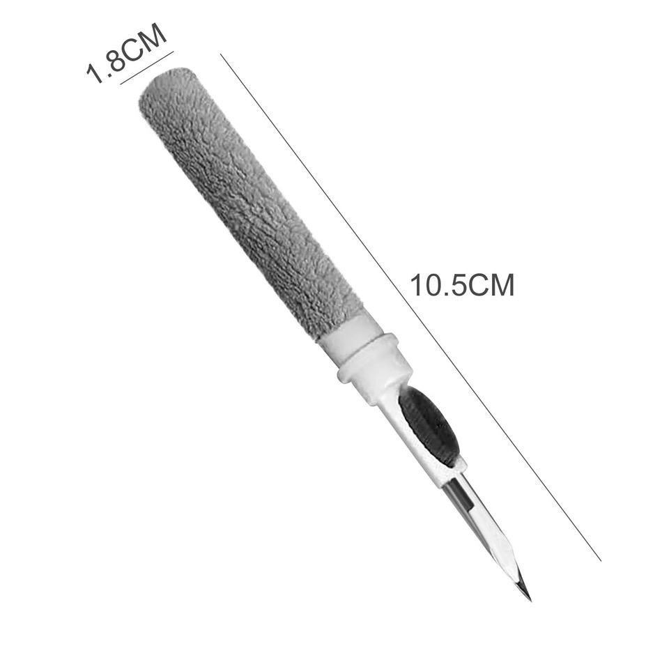 EARBUDS CLEANING PEN: طرف قلم التنظيف يشبه طرف القلم تمامًا ، والذي يمكنه تنظيف الأجزاء الصغيرة والثقوب من وسادات الأذن ، وهناك فرشاة ناعمة من الألياف الدقيقة فوق طرف القلم ، والتي يمكنها تنظيف الأجزاء الصغيرة بعمق و ثقوب سماعات الأذن. يوجد في الطرف الآخر من القلم فرشاة ناعمة وخفيفة الوزن تنظف حاوية الشحن
