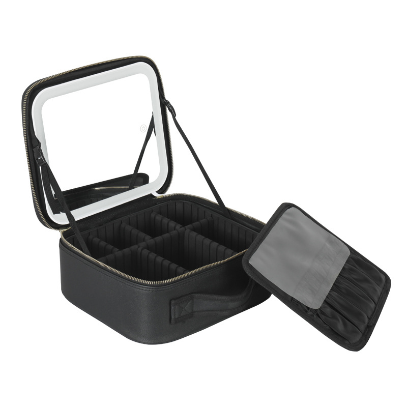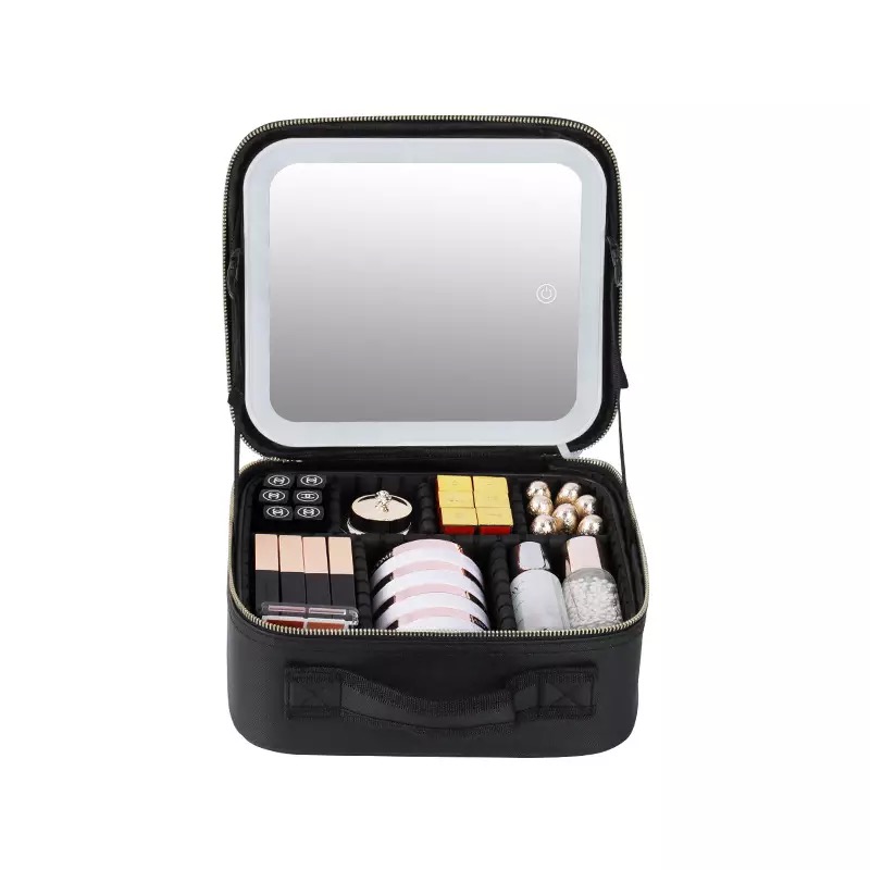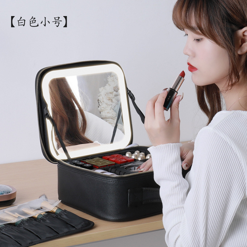 2. صندوق تخزين الماكياج بضوء LED مصنوع من نسيج جلدي صناعي دقيق ، مقاوم للماء ومقاوم للتآكل.