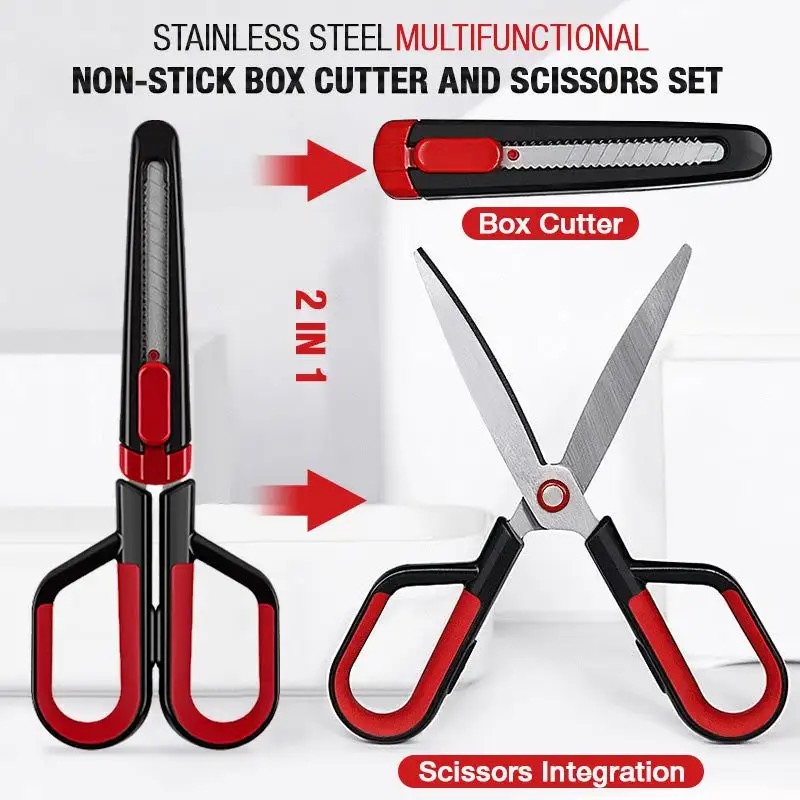 【مقص متعدد الوظائف】: سكين ومقص، تصميم متكامل، سهل الحمل والاستخدام. حماية الغمد، يمكن أيضًا أن يكون قاطعًا، سكينة واحدة لغرضين، يمكن قطع كل منهما دون أخطاء، يمكن لغطاء الحماية الأمامي حماية المقص عند عدم الاستخدام، يمكن أيضًا استخدامه كسكين فني عند فتح صندوق توصيل.