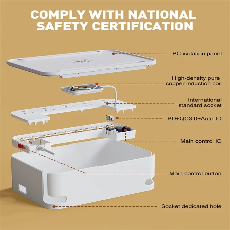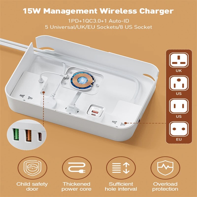 تطبيق واسع: يمكن لمنافذ التيار المتردد شحن العديد من الأجهزة مثل الكمبيوتر المحمول، والطابعات، والمصابيح، والمرواح، والماسحات الضوئية، إلخ. البديل المثالي لشرائط التوصيل المفتوحة، ومحولات الشحن، ومحطات الشحن اللاسلكية لموجهات الشبكة. يمكن استخدامه في المنزل، المكتب، أو أماكن أخرى.