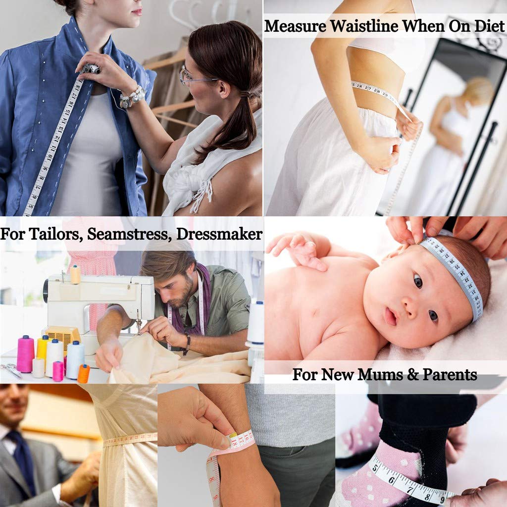 المواد: شريط قياس الخياطة من الفينيل لا يتمدد أو يتشوه، ويوفر استمرارية قياس أفضل؛ شريط قياس لين، مرن وقابل للحمل، مصنوع من مواد بلاستيكية لينة