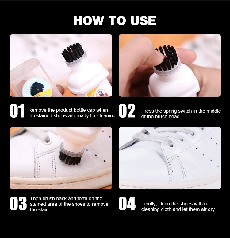 منظف الاحذية الرياضية مع فرشاةشامبو تنظيف الأحذية الرياضية دون الحاجة للغسيل أو استخدام الماء لإزالة الأوساخ والبقع لجميع ألالوان بسعة 100 ملي