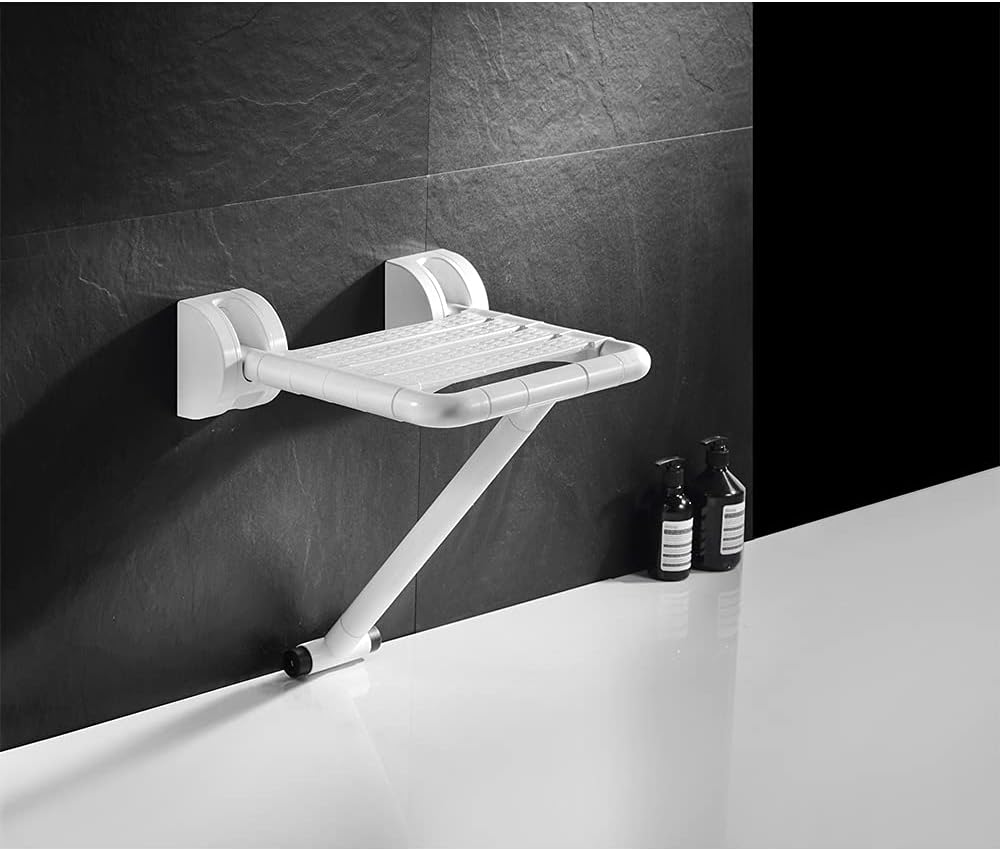 طراز مثبت على الحائط، سهل التركيب باستخدام مجموعة براغي. تصميم قابل للطي، موفر للمساحة في الحمام.