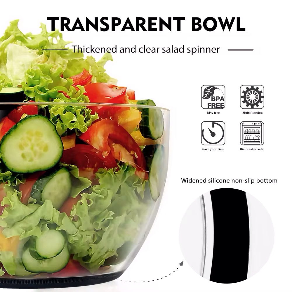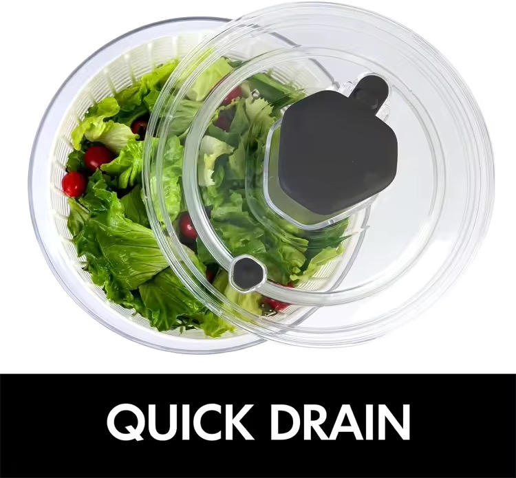 مجفف الخضروات والورقيات سهل الاستخدام بيد واحدة عند الضغط على المقبض ستدور السلة الداخلية بسلاسة وثبات وسرعة عالية
