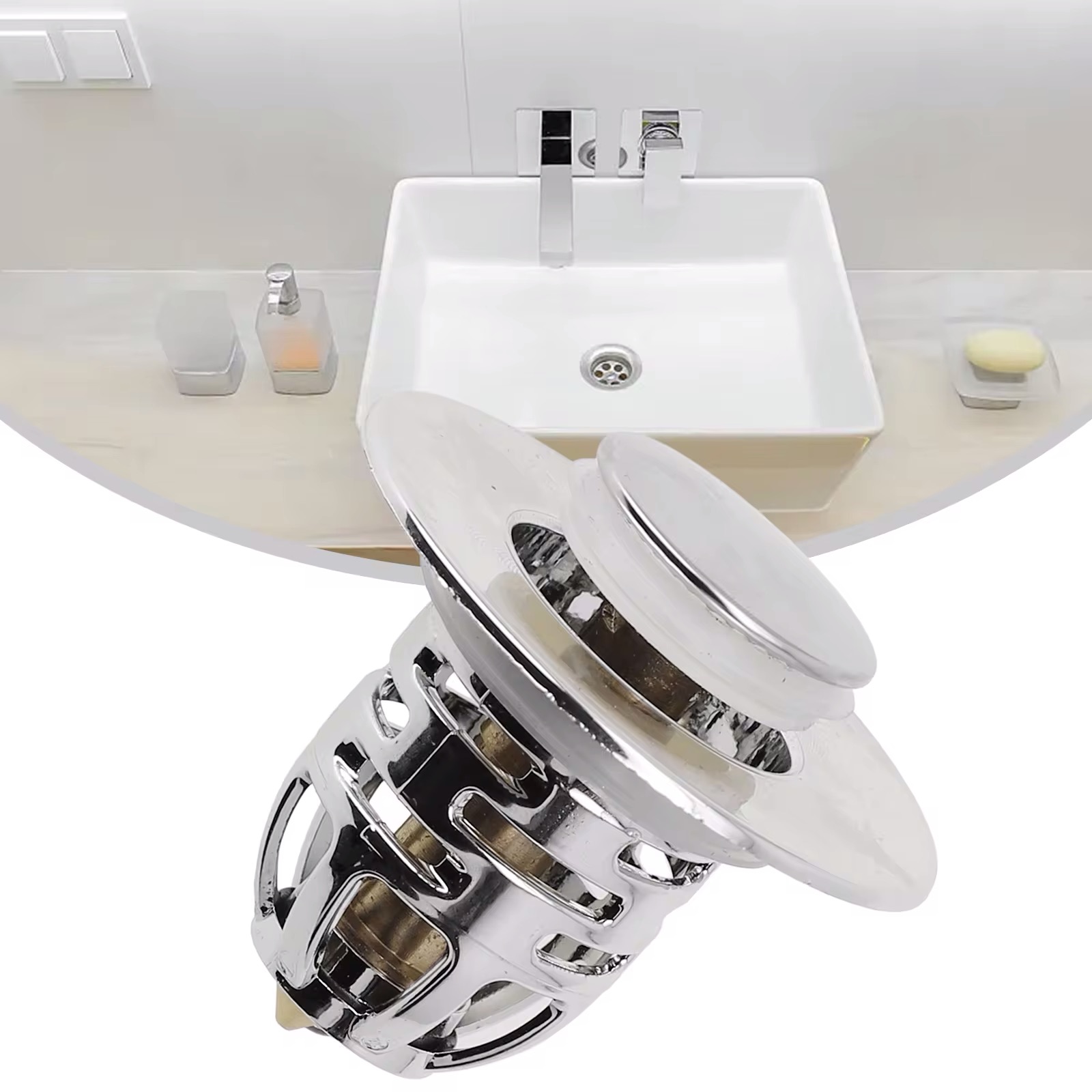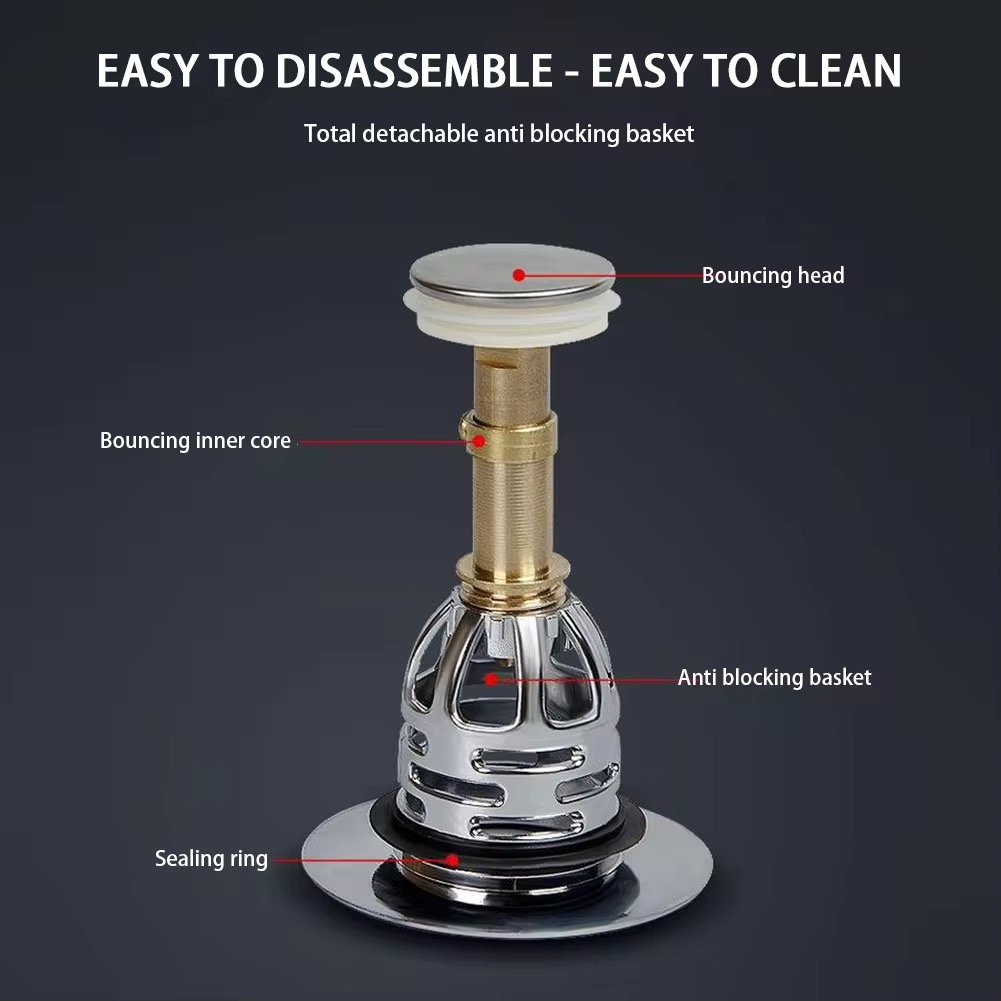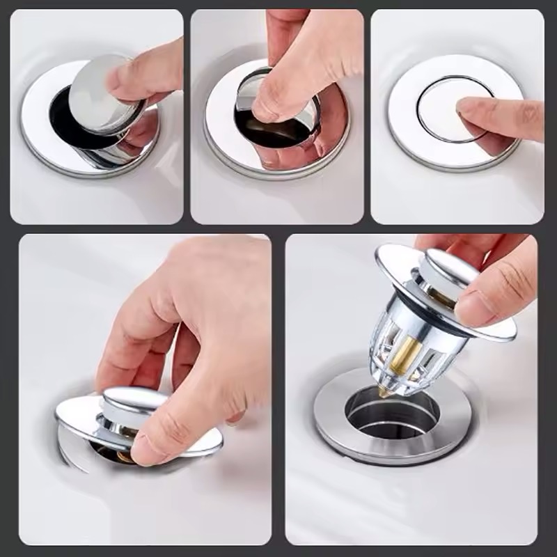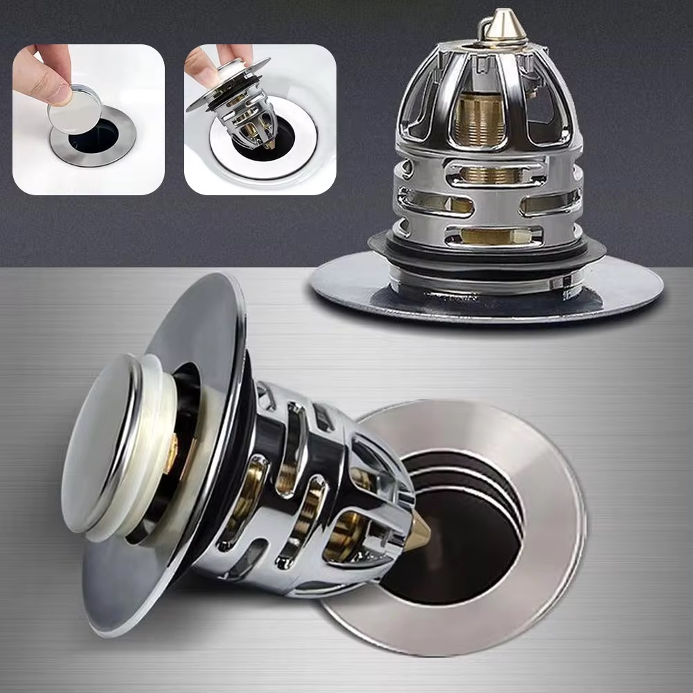 سدادة حوض الاستحمام والمغاسل مع فلتر قابلة للفتح والاغلاق بضغطة واحدة