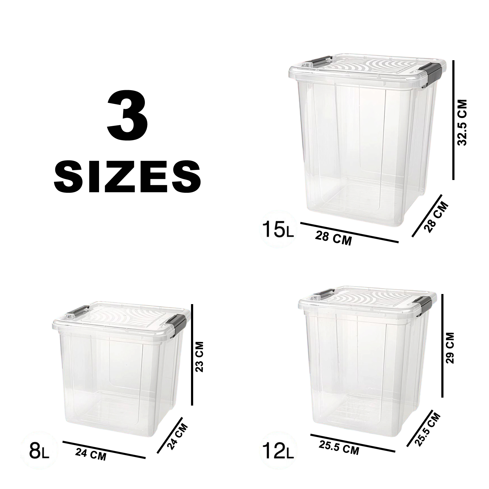 ✅ متوفر بثلاثة أحجام عملية – تأتي علبة التخزين بسعات 8 لتر، 12 لتر، و15 لتر لتناسب مختلف احتياجات التخزين. سواء كنت بحاجة إلى خيار صغير للمكونات أو حاوية أكبر للتخزين بالجملة، ستجد الحجم المثالي لك.