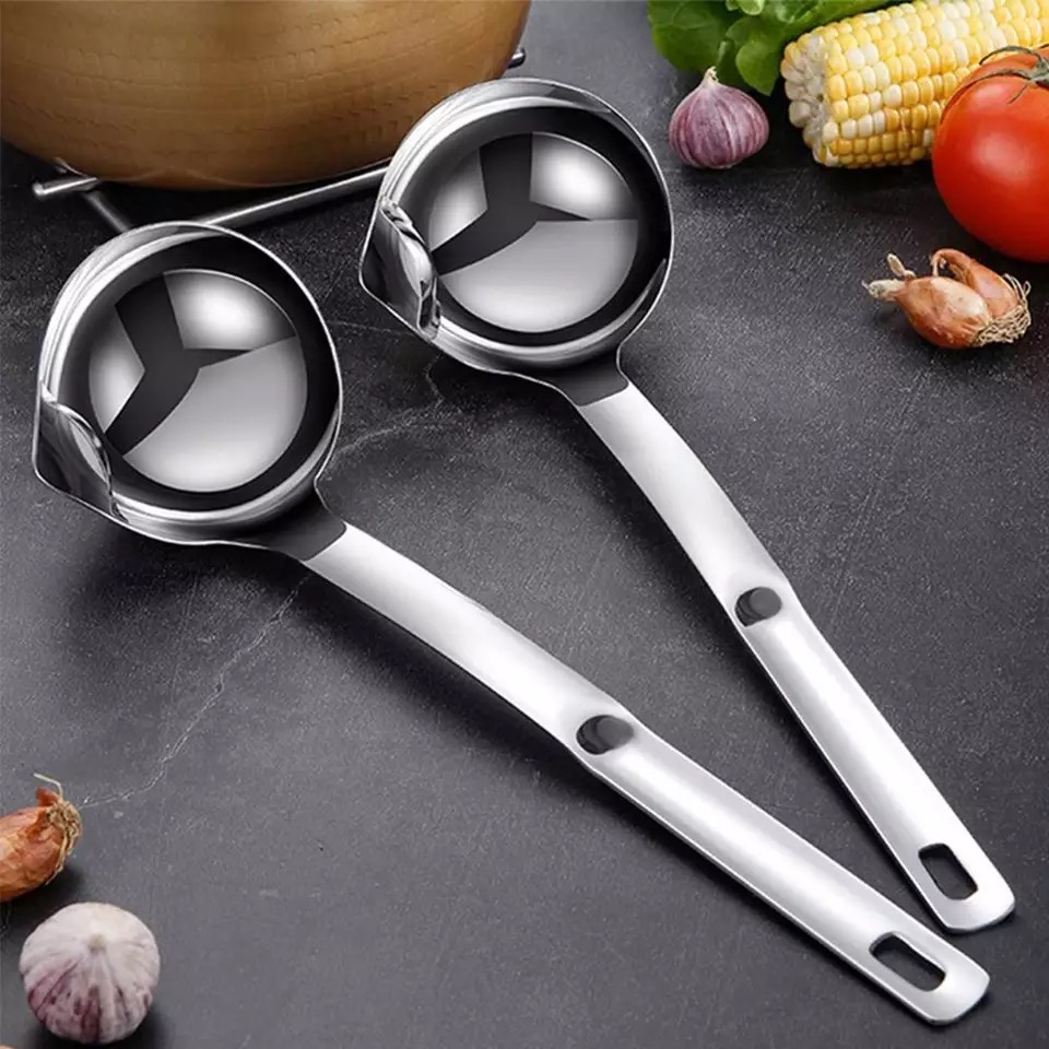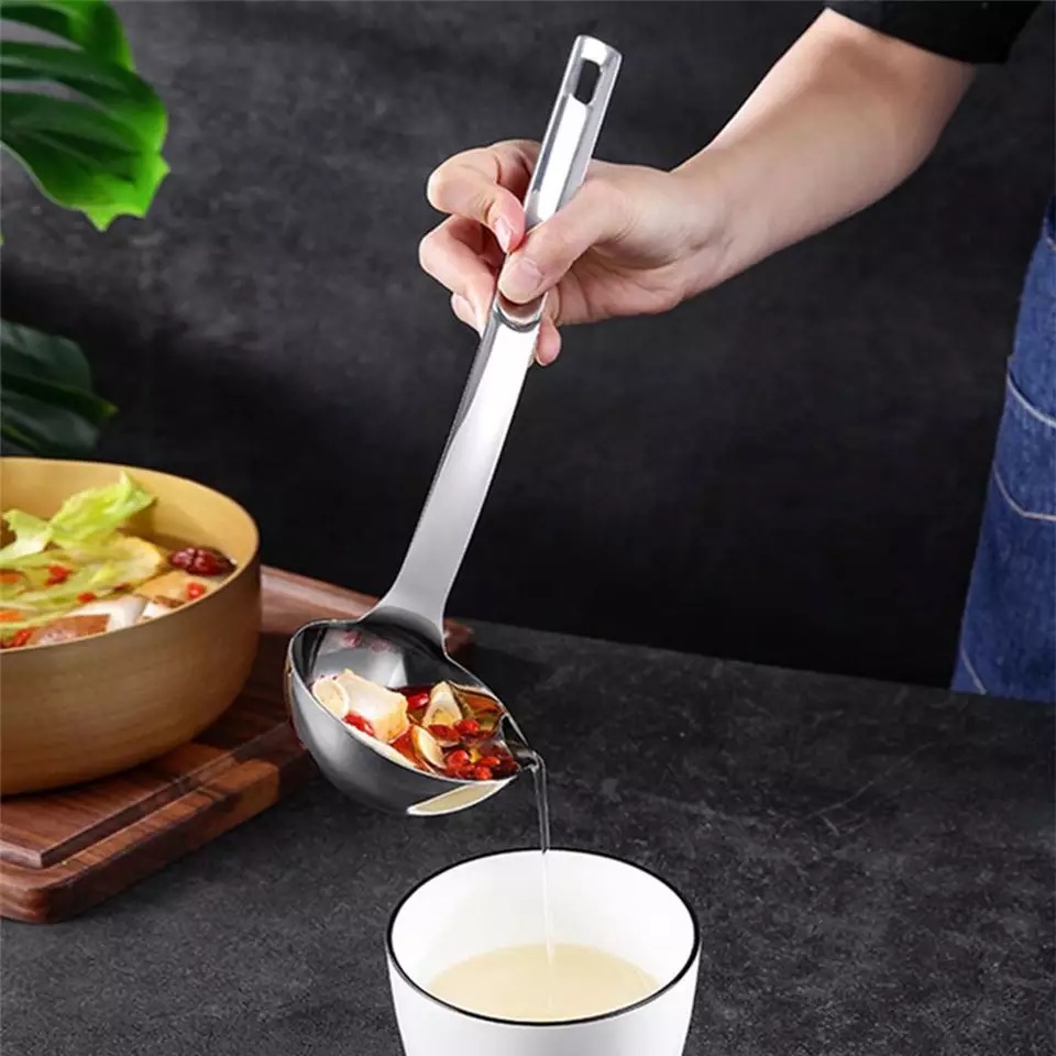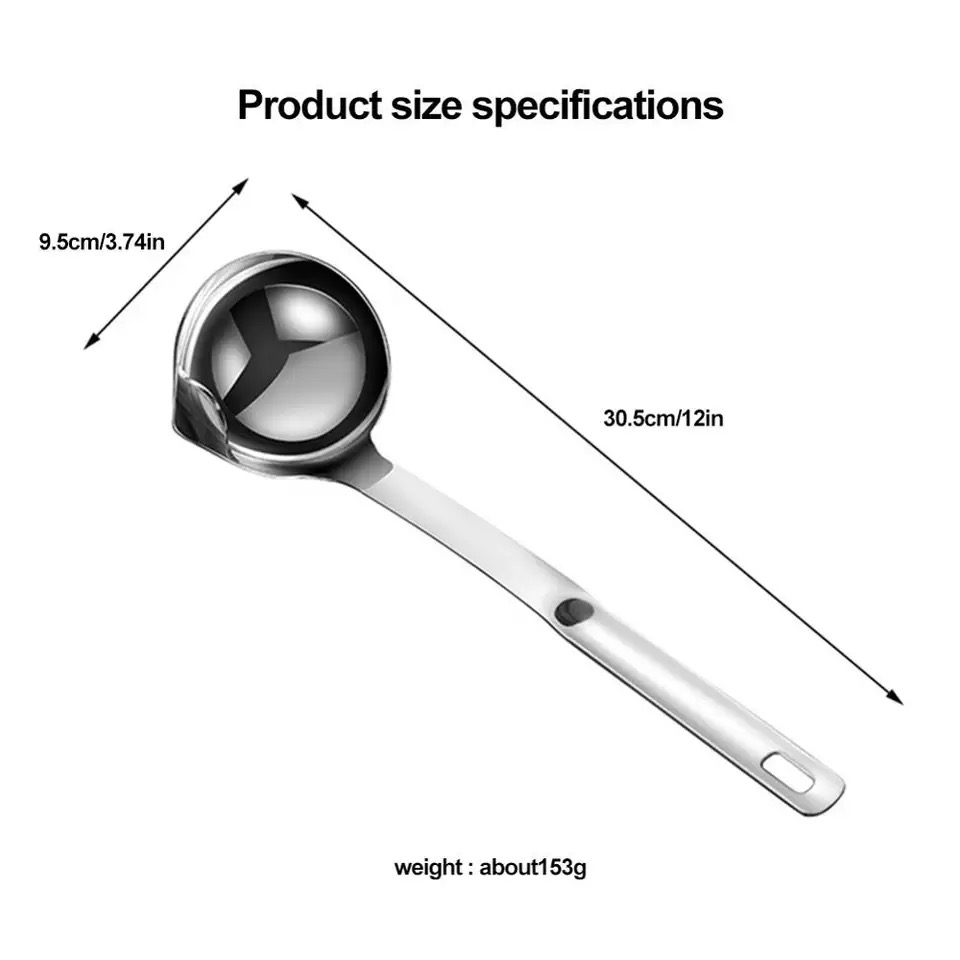 مقرافة لفصل الزيت بدقة لأن الزيت والماء غير قابلين للأمتزاج وكثافة الزيت أصغر من كثافة الماء والدهون تطفو فوق الحساء ويتم ضبط فتحة المخرج فى أسفل الملعقة عند السكب ثم يتدفق الحساء الصافي من الحفرة أولاً ثم يتم فصل الشحوم فى الطبقة العلوية لتحقيق تأثير الماء والزيت ، مصممة بمقبض مريح ، سهلة الأستخدام والتنظيف ...