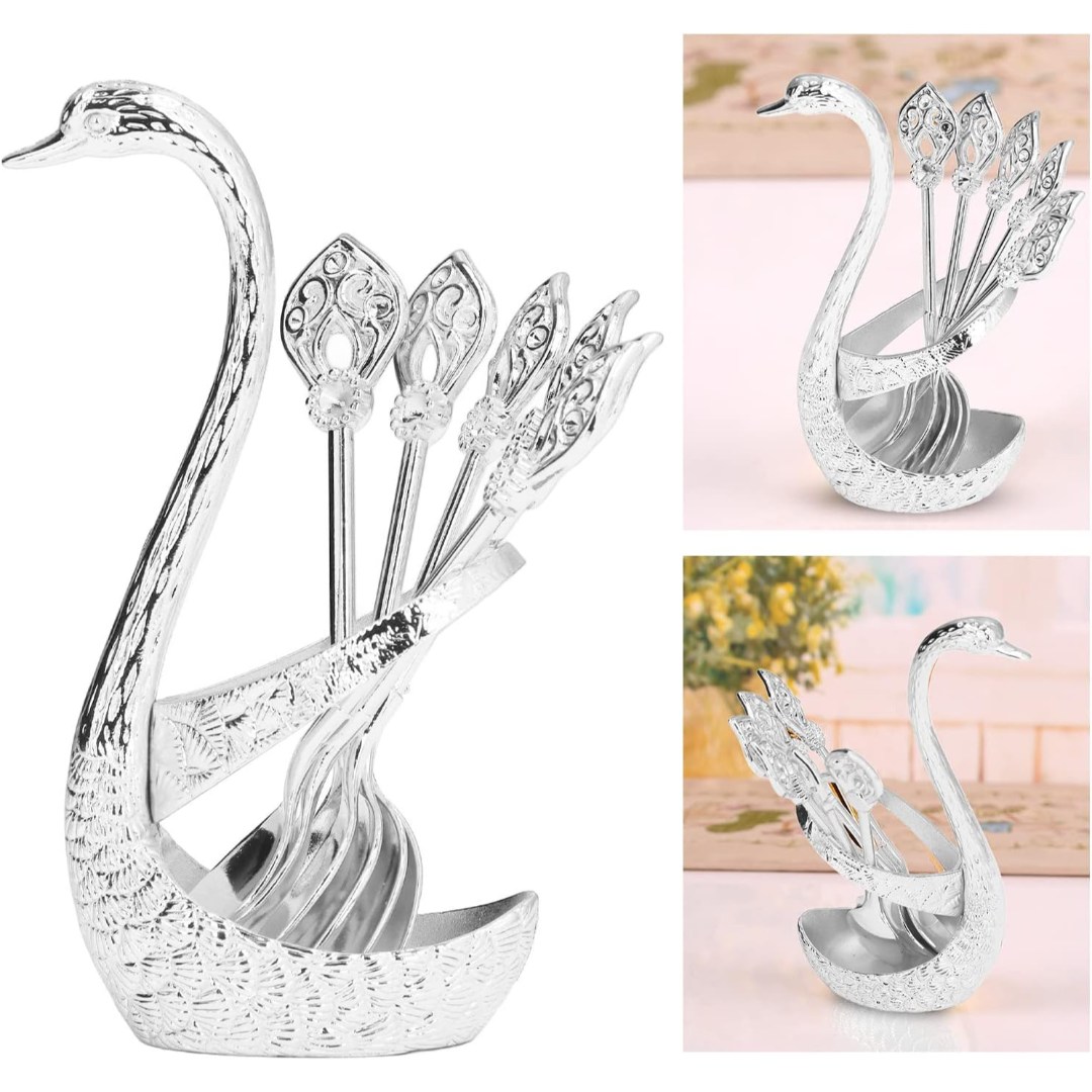تصميم بجع أنيق: مصنوع من سبيكة الزنك المتينة مع تشطيب فضي ناعم وتفاصيل منحوتة دقيقة، يضيف هذا الحامل على شكل بجع لمسة من الأناقة لأي مكان.