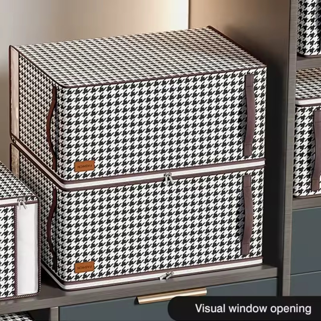 حل تخزين أنيق: يتميز بنقشة عصرية على شكل سنّ الكلب (هاوندستوث) تضيف لمسة من الأناقة إلى أي غرفة مع الحفاظ على تنظيم أغراضك بشكل مرتب.