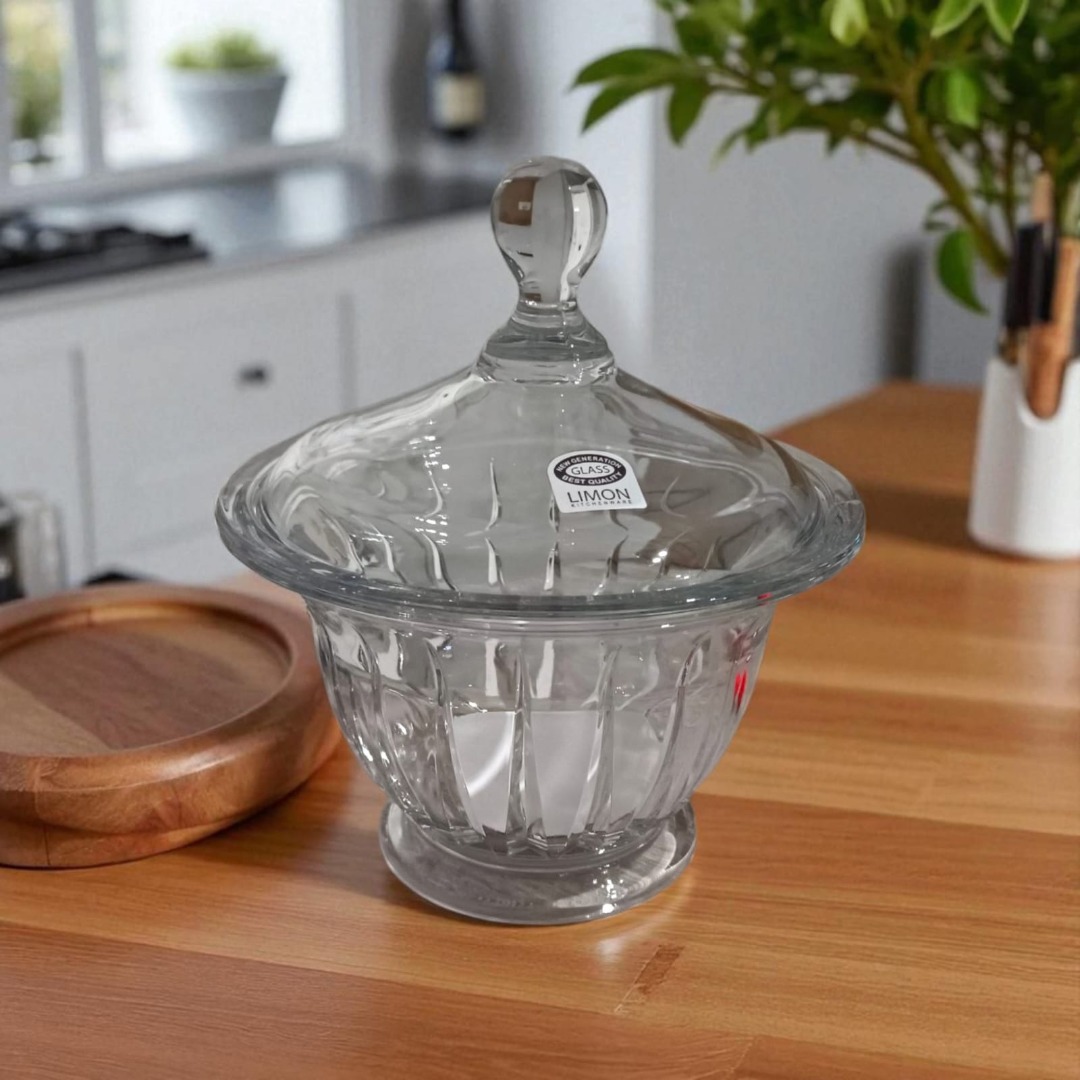 تصميم أنيق – برطمان زجاجي بتصميم جميل وكلاسيكي مع لمسة شفافة وغطاء دائري، مما يجعله قطعة ديكور مثالية لأي مطبخ أو منزل.