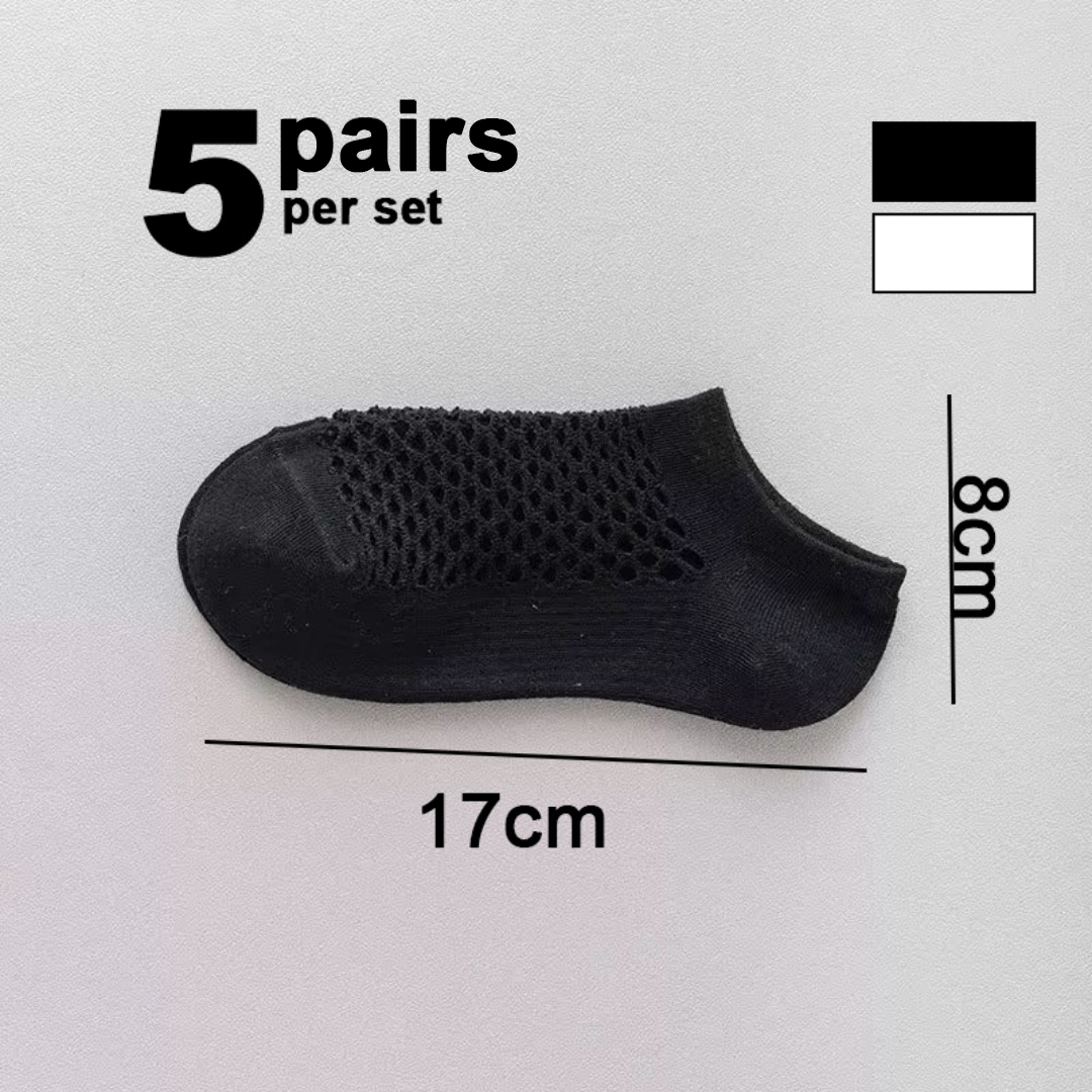 مقاس عملي وعبوة اقتصادية – يبلغ مقاس الجورب تقريباً 17×8 سم، ويأتي في عبوة تحتوي على 5 أزواج للاستخدام اليومي المريح.