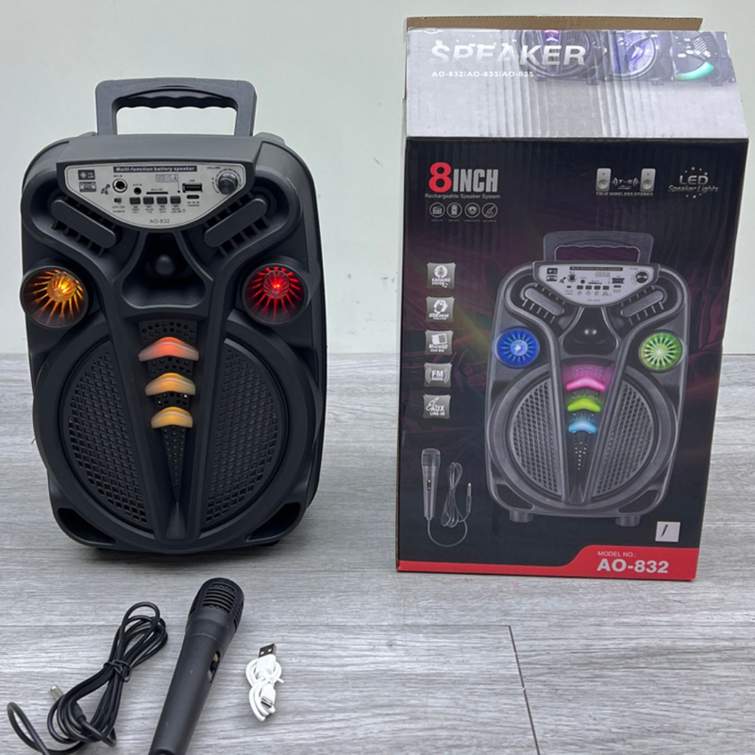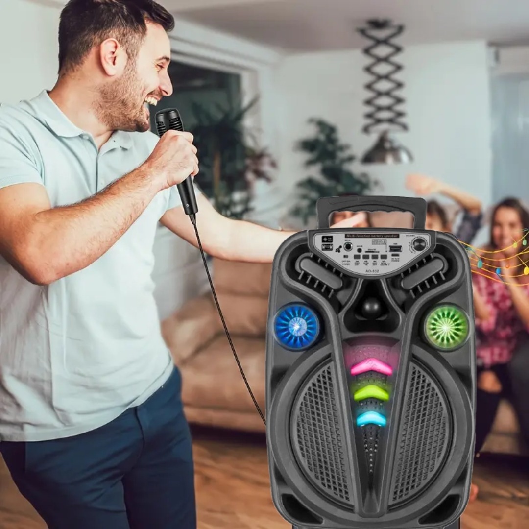 نظام سماعات قوي مقاس 8 بوصة – يقدّم صوتًا واضحًا وعميقًا مع جهير قوي، مثالي للحفلات، الكاريوكي، أو الترفيه المنزلي.