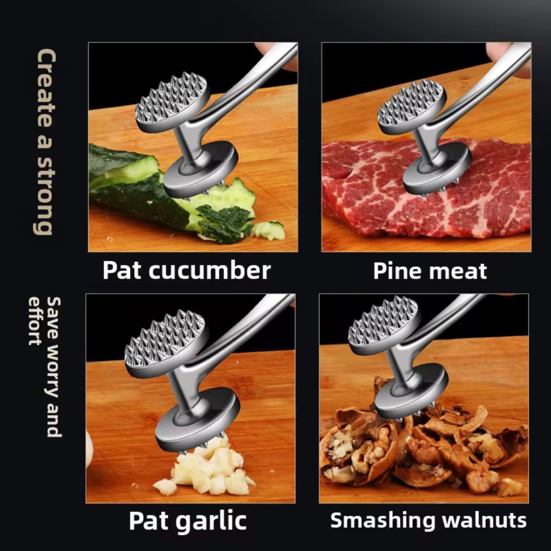 استخدامات متعددة – أداة عملية يمكن استخدامها لتطرية اللحوم، سحق الثوم، كسر الجوز، أو ضغط الخيار، وتتميز بأسنان حادة تجعلها متعددة المهام في المطبخ.