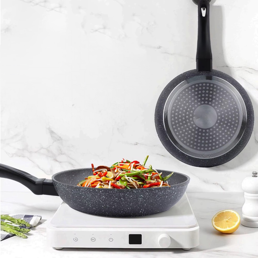 متوفر بعدة أحجام – يأتي بعدة مقاسات لتناسب مختلف الاحتياجات في الطهي، من قطر 28 سم إلى 30 سم.
