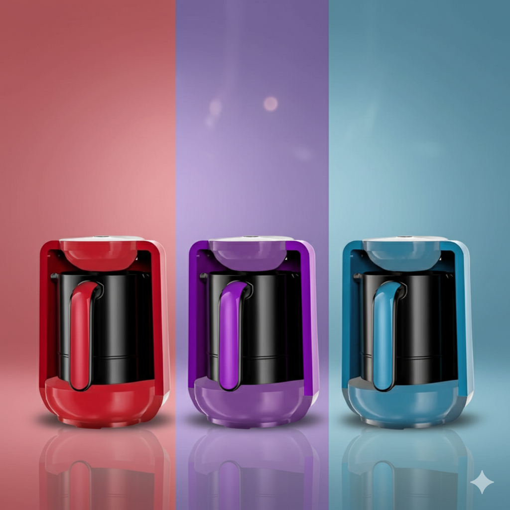 تصميم عصري أنيق: صانعة قهوة مدمجة بتصميم أنيق ولمسة لامعة متوفرة بألوان زاهية مثل الأحمر والأزرق والبنفسجي.
