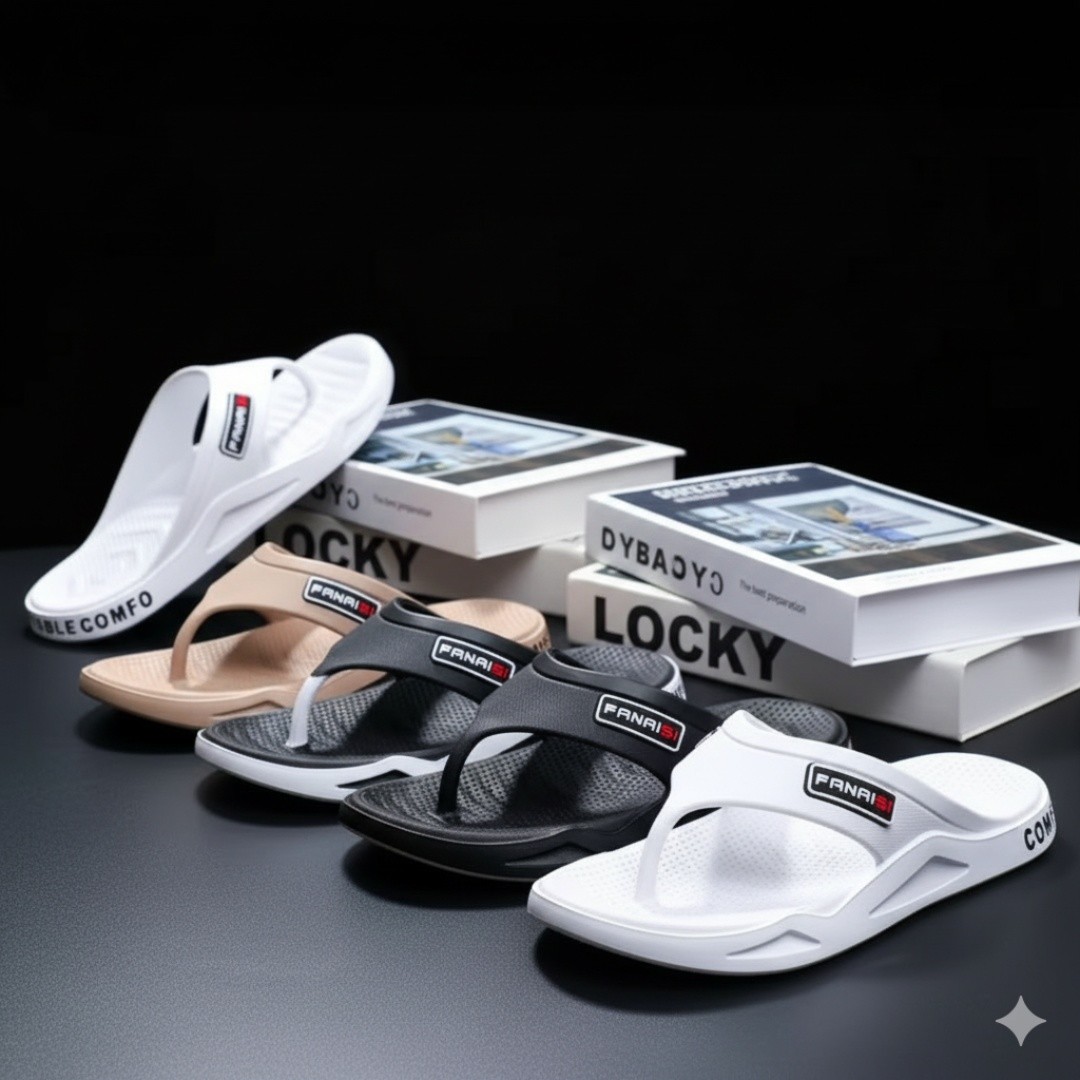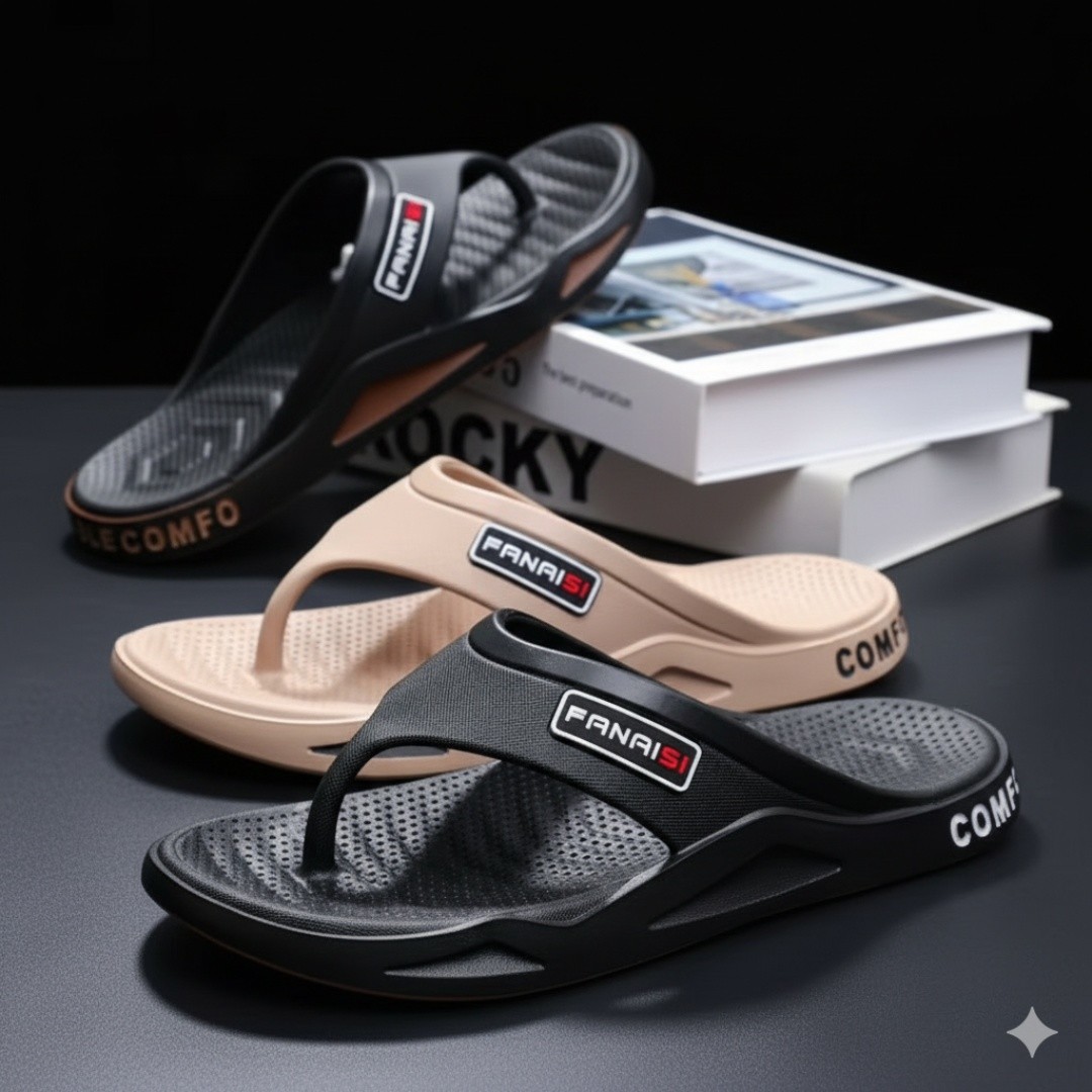 تصميم رياضي: يتميز بأسلوب شبشب عصري مع نعل بلون متباين وشعار “FANAISI” الجريء لمظهر ديناميكي ورياضي.